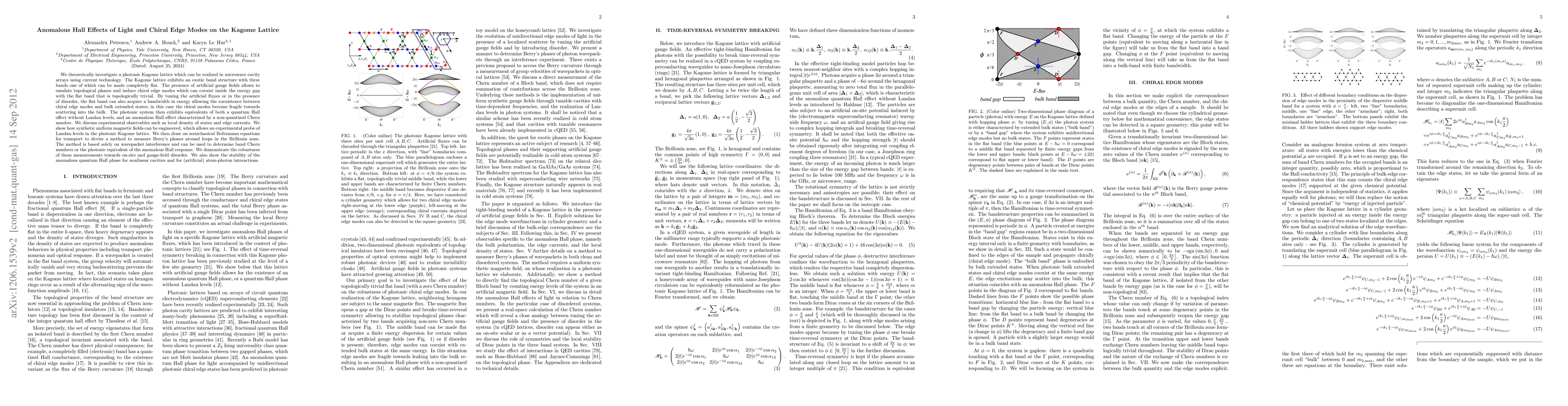 This paper explores a photonic Kagome lattice with a flat band and chiral edge modes, demonstrating both quantum Hall and anomalous Hall effects. It proposes experimental methods to measure these effects and discusses the robustness of these phenomena under various conditions.