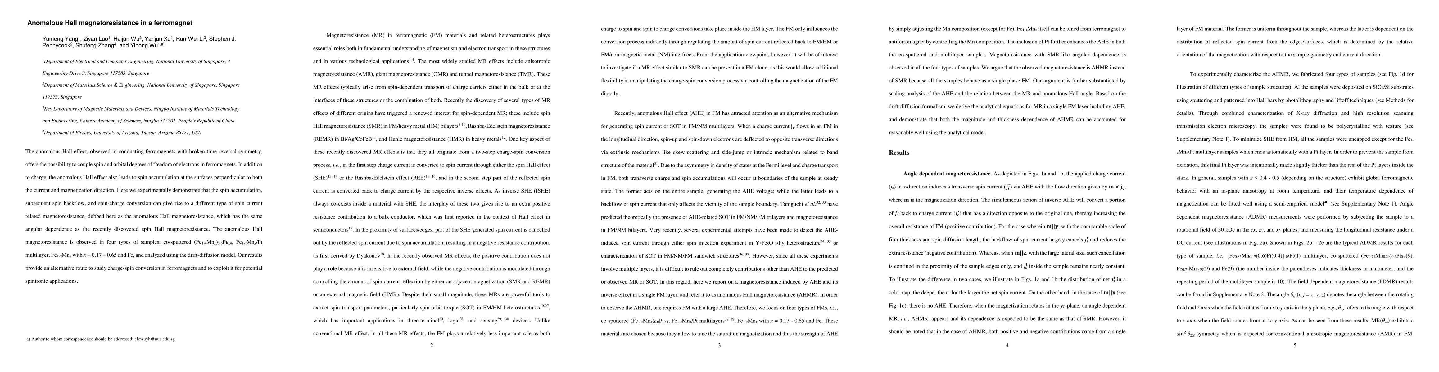 This paper demonstrates the anomalous Hall magnetoresistance in conducting ferromagnets, showing that spin accumulation and backflow lead to a distinct type of spin current related magnetoresistance. The findings suggest a new approach for charge-spin conversion studies and potential spintronic applications.
