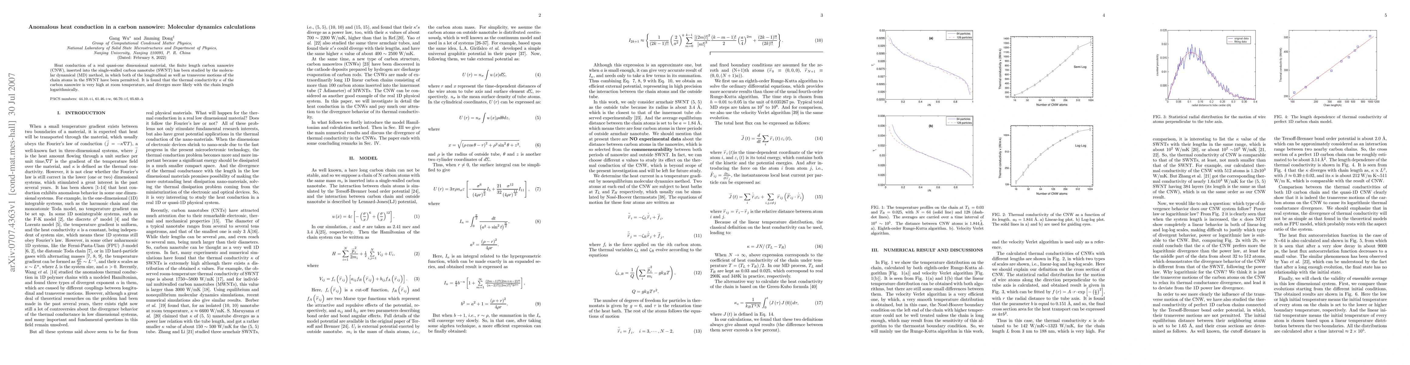This study uses molecular dynamics calculations to investigate heat conduction in carbon nanowires inserted into single-walled carbon nanotubes, finding exceptionally high thermal conductivity at room temperature that increases logarithmically with nanowire length.