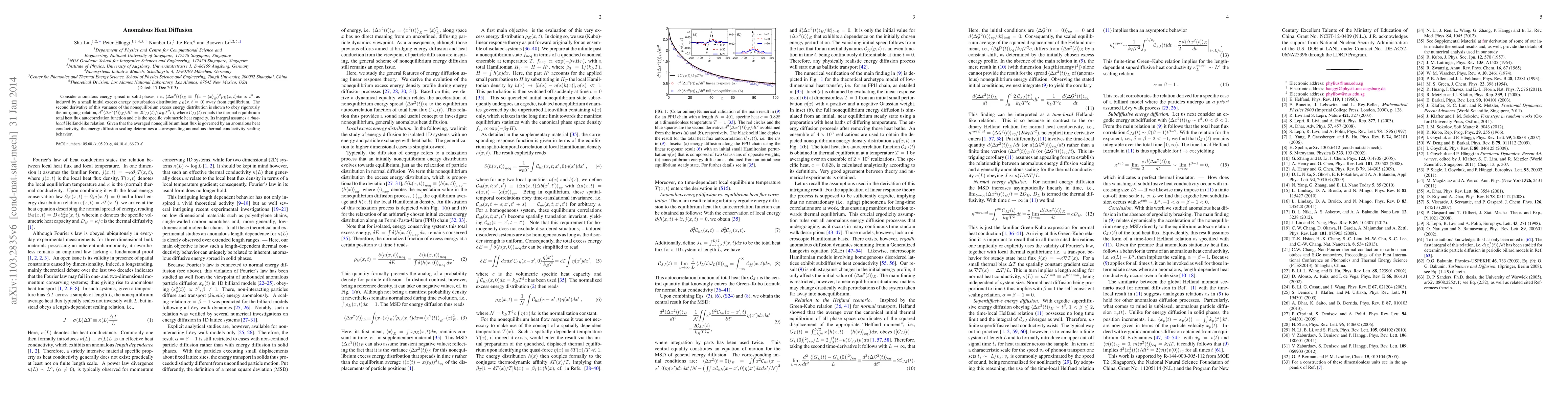 This paper investigates anomalous heat diffusion in solid phases, demonstrating that the mean squared displacement (MSD) of energy spread follows a power law $MSD \propto t^{\beta}$, where $\beta$ is a scaling exponent. It establishes a relationship between the MSD and the heat flux autocorrelation function, revealing an anomalous thermal conductivity scaling behavior.