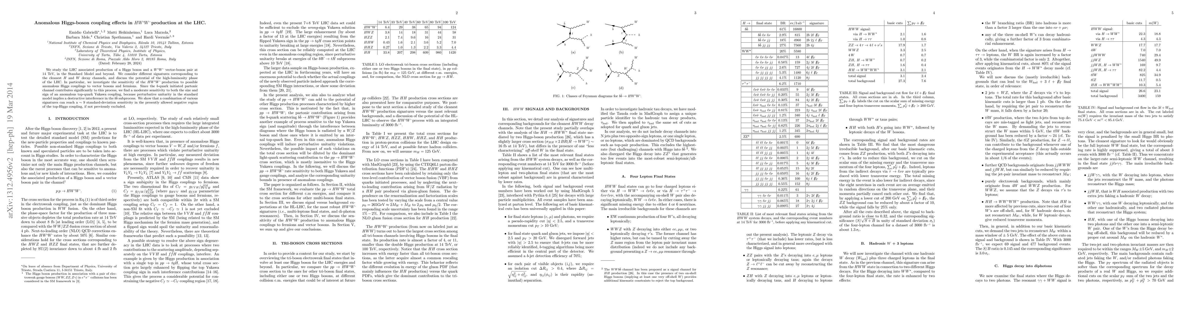 This paper investigates the LHC's HWW production at 14 TeV, focusing on anomalous Higgs-boson couplings to vector bosons and fermions. It finds a moderate sensitivity to the size and sign of anomalous top-quark Yukawa coupling, achieving ~9 standard-deviation sensitivity in the allowed negative region of the top-Higgs coupling.