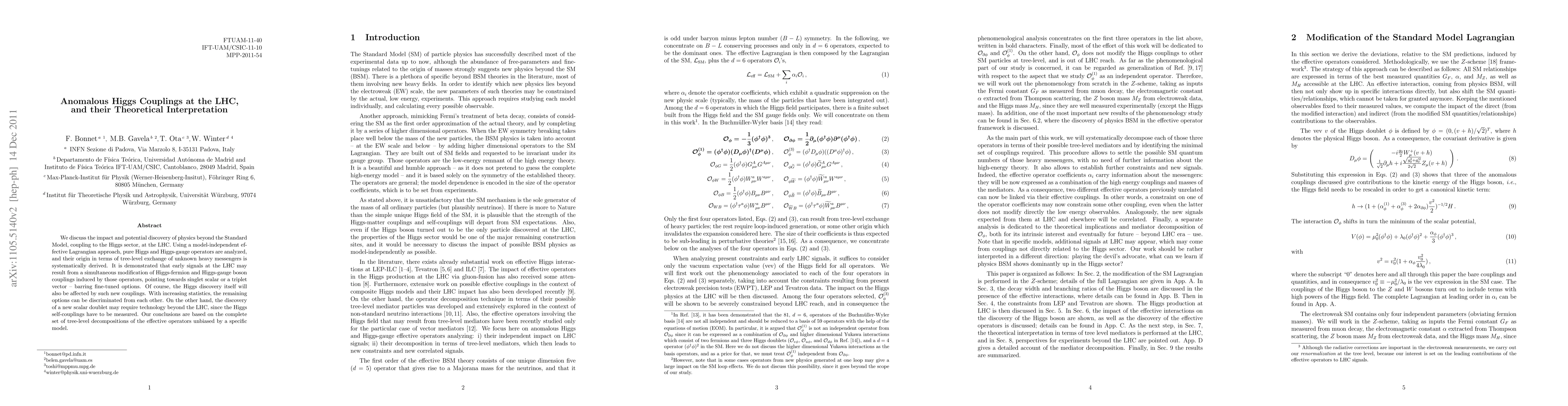 This paper explores the potential discovery of physics beyond the Standard Model through anomalous Higgs couplings at the LHC, employing a model-independent effective Lagrangian approach. It identifies early LHC signals as possible modifications of Higgs-fermion and Higgs-gauge boson couplings due to new physics, suggesting singlet scalars or triplet vectors as likely candidates.