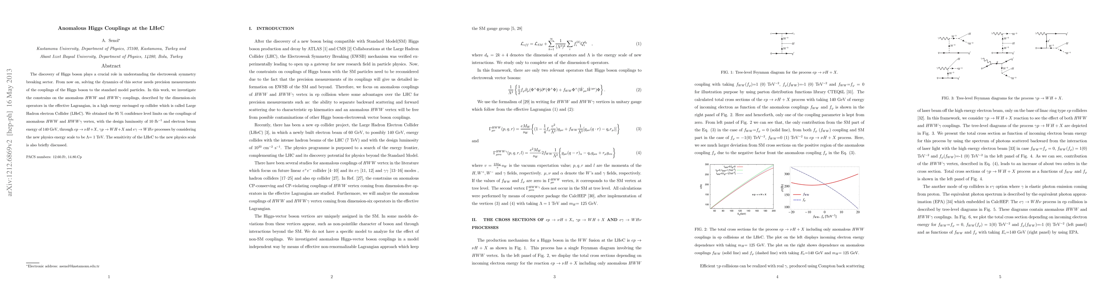 This research investigates constraints on anomalous Higgs couplings at the LHeC, focusing on the $HWW$ and $HWW\gamma$ vertices. Using processes like $ep\to \nu H +X$, the study sets 95% confidence level limits on these couplings with a design luminosity of 10 fb$^{-1}$ and 140 GeV electron beam energy, exploring the LHeC's sensitivity to new physics at a scale of 1 TeV.