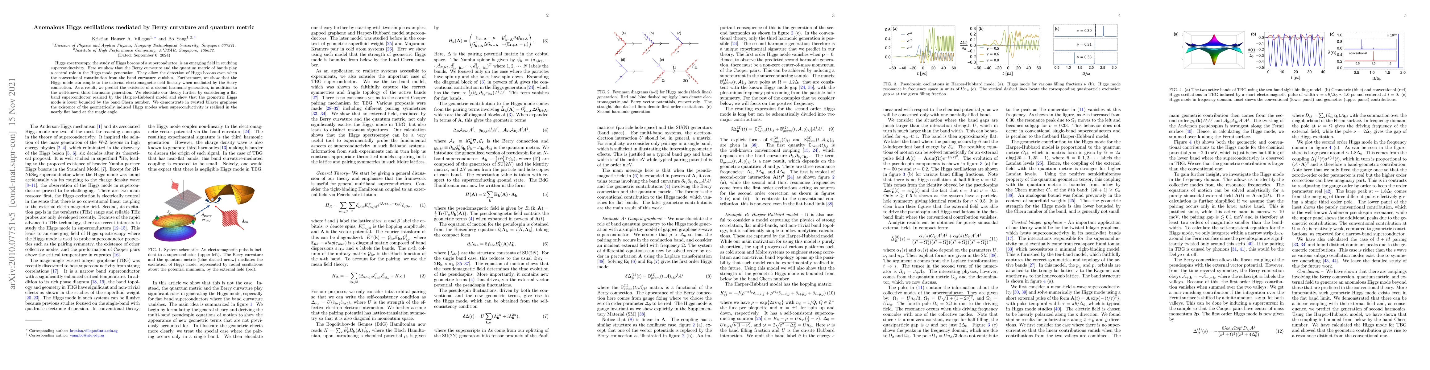 Researchers discover that Berry curvature and quantum metric play a crucial role in generating Higgs bosons in superconductors, allowing for the detection of these particles even when traditional band curvature is absent.