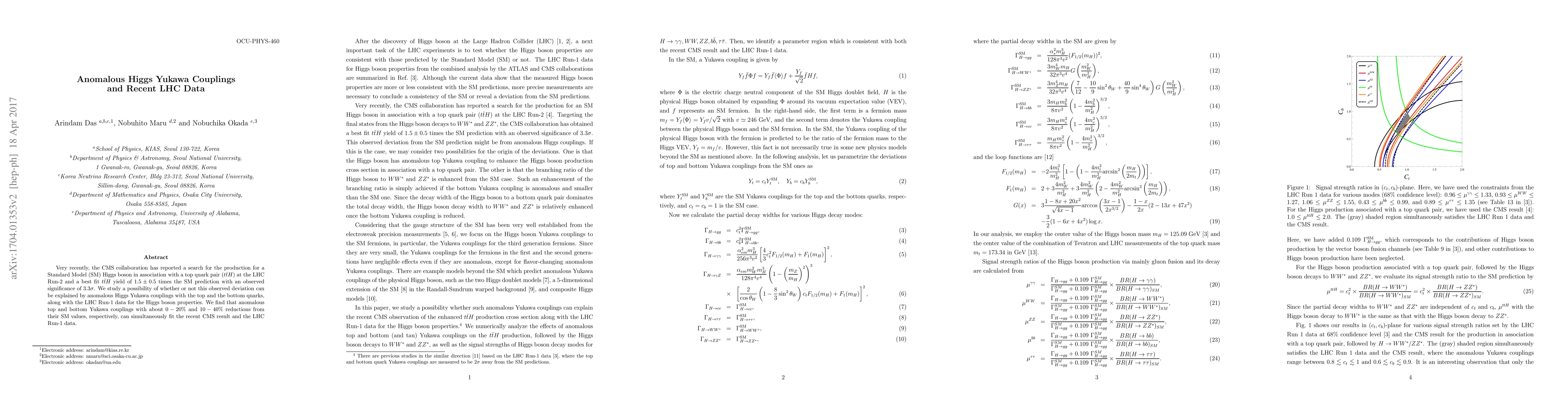 The paper presents a detailed analysis of anomalous Higgs Yukawa couplings with top and bottom quarks, demonstrating their potential to explain observed deviations in $tar{t}H$ production yield using both LHC Run-1 and recent CMS data.