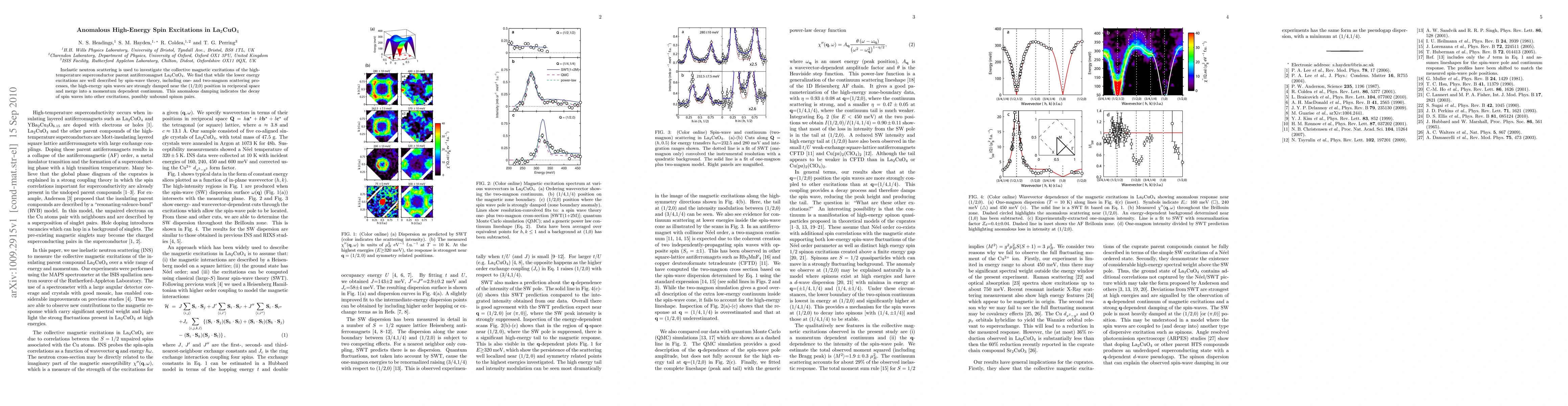 This study reveals that La2CuO4 exhibits anomalous high-energy spin excitations, where lower energy spin waves follow standard spin-wave theory but high-energy waves are strongly damped, suggesting decay into other excitations like unbound spinon pairs.