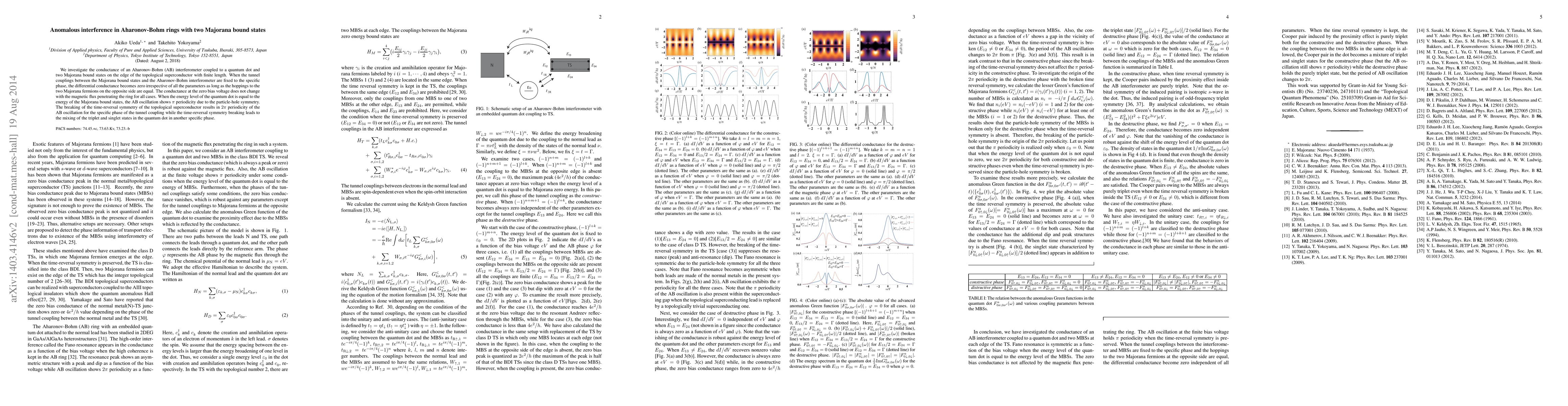 We investigate the conductance of an Aharonov-Bohm (AB) interferometer coupled to a quantum dot and two Majorana bound states on the edge of the topological superconductor with finite length. When the tunnel couplings between the Majorana bound states and the Aharonov-Bohm interferometer are fixed to the specific phase, the differential conductance becomes zero irrespective of all the parameters as long as the hoppings to the two Majorana fermions on the opposite side are equal. The conductance at the zero bias voltage does not change with the magnetic flux penetrating the ring for all cases. When the energy level of the quantum dot is equal to the energy of the Majorana bound states, the AB oscillation shows \pi periodicity due to the particle-hole symmetry. The breaking of the time-reversal symmetry of the topological superconductor results in 2\pi periodicity of the AB oscillation for the specific phase of the tunnel coupling while the time-reversal symmetry breaking leads to the mixing of the triplet and singlet states in the quantum dot in another specific phase.
