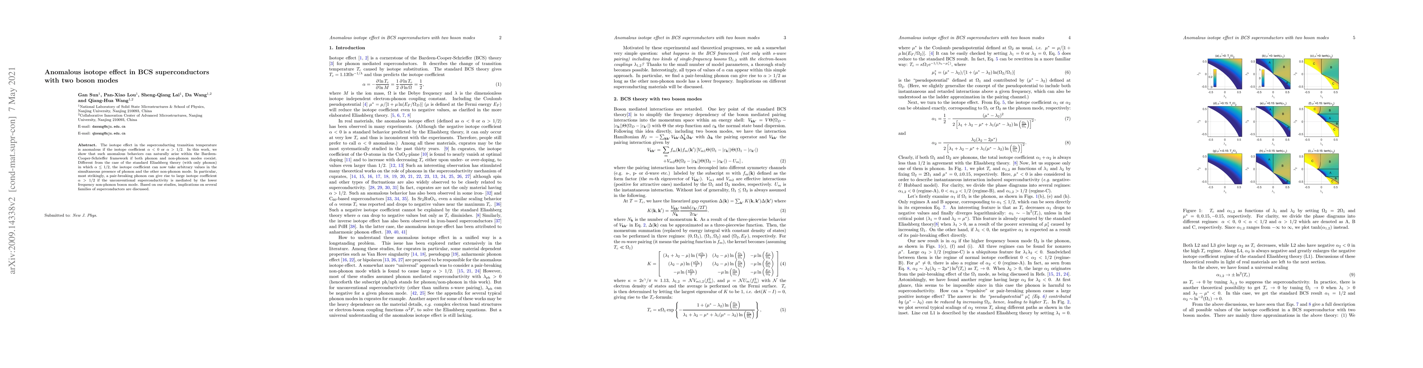 This paper investigates how the coexistence of phonon and non-phonon modes in BCS superconductors can lead to anomalous isotope effects with $\alpha < 0$ or $\alpha > 1/2$, challenging the standard Eliashberg theory. The study suggests that unconventional superconductivity mediated by lower frequency non-phonon modes can produce significant $\alpha > 1/2$.