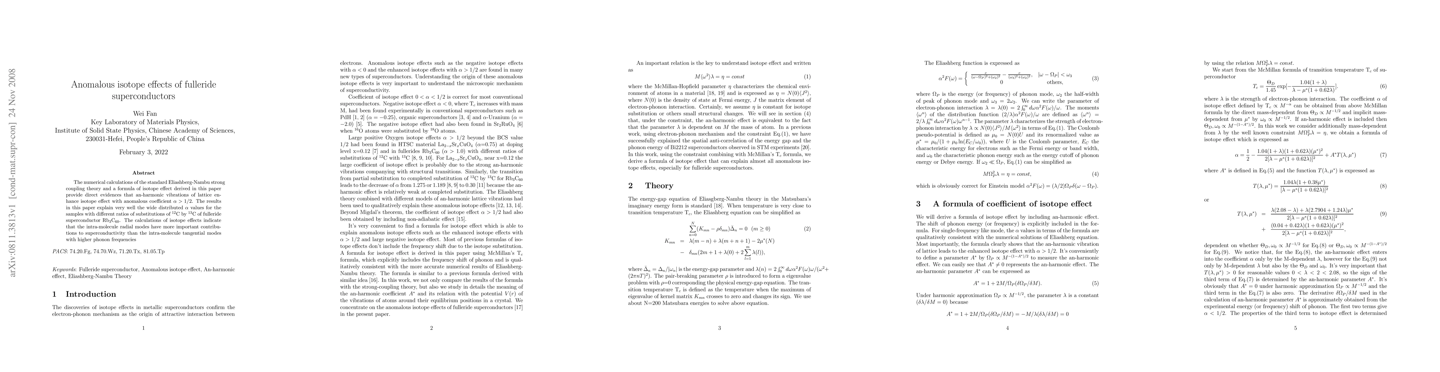 The numerical calculations of the standard Eliashberg-Nambu strong coupling theory and a formula of isotope effect derived in this paper provide direct evidences that an-harmonic vibrations of lattice enhance isotope effect with anomalous coefficient $\alpha>1/2$. The results in this paper explain very well the wide distributed $\alpha$ values for the samples with different ratios of substitutions of $^{12}$C by $^{13}$C of fulleride superconductor Rb$_{3}$C$_{60}$. The calculations of isotope effects indicate that the intra-molecule radial modes have more important contributions to superconductivity than the intra-molecule tangential modes with higher phonon frequencies