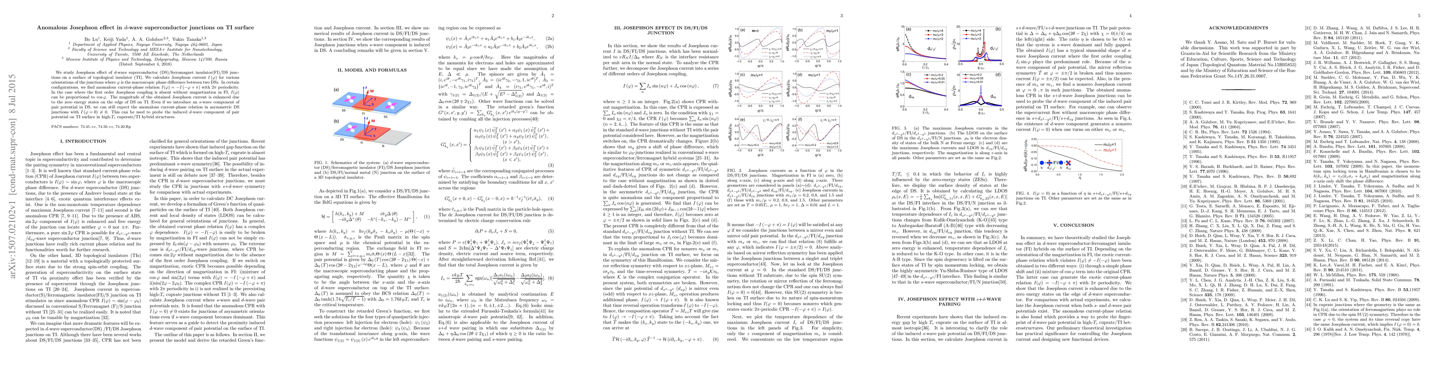 This paper investigates the Josephson effect in $d$-wave superconductor junctions on topological insulator surfaces, revealing an anomalous current-phase relation $I(\varphi)=-I(-\varphi+\pi)$ with $2\pi$ periodicity, which is enhanced by zero energy states on the DS edge. The findings suggest potential applications in probing induced $d$-wave superconductivity in high-$T_c$ cuprate/TI hybrid structures.