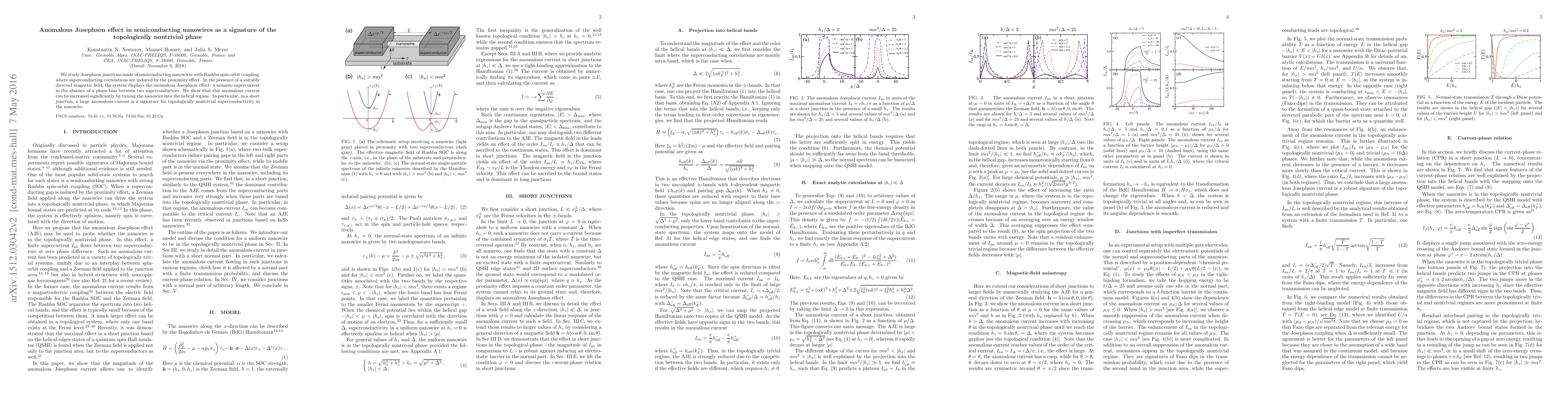 This paper investigates Josephson junctions in semiconducting nanowires with Rashba spin-orbit coupling, revealing an anomalous Josephson effect due to topologically nontrivial superconductivity. The study finds that tuning the nanowire into the helical regime significantly enhances the anomalous current, serving as a signature of this unique superconducting phase.