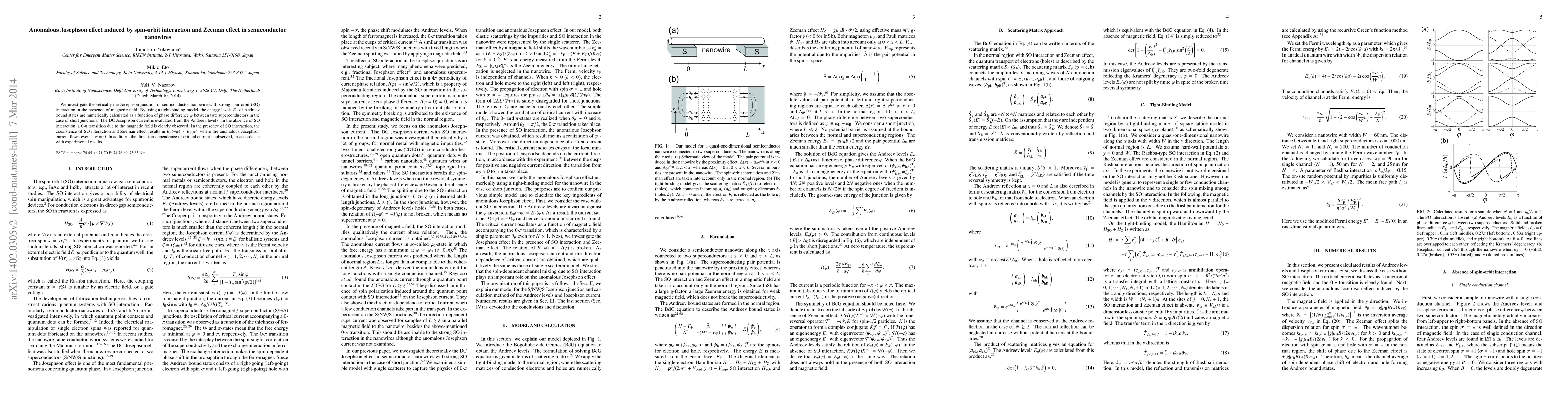 This paper theoretically explores the Josephson junction in semiconductor nanowires with strong spin-orbit interaction and magnetic field, revealing an anomalous Josephson effect where current flows even at zero phase difference due to the interplay of spin-orbit and Zeeman effects. The study also observes direction-dependent critical current, consistent with experimental observations.