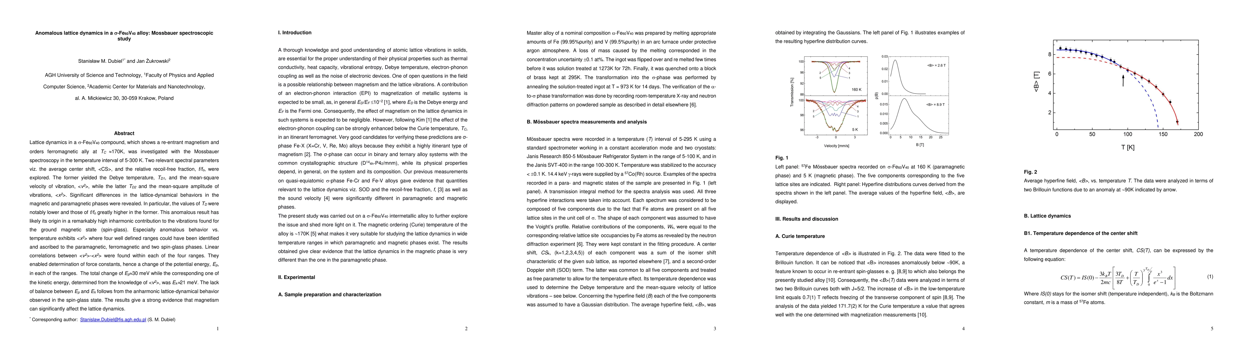 recoil-free fraction, f/fo, were explored. The former yielded the Debye