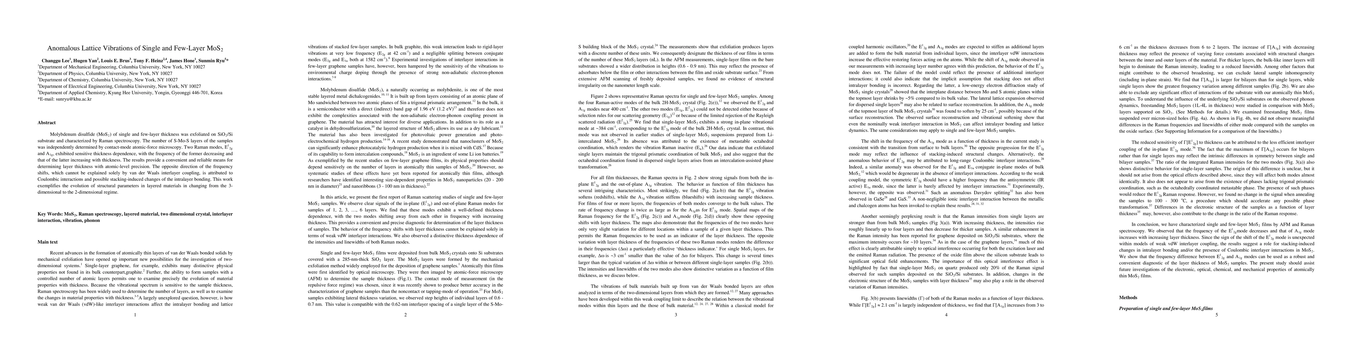 Research on MoS2 sheets reveals that Raman modes show opposite frequency shifts with increasing thickness, attributed to Coulombic interactions, not just van der Waals interlayer coupling.