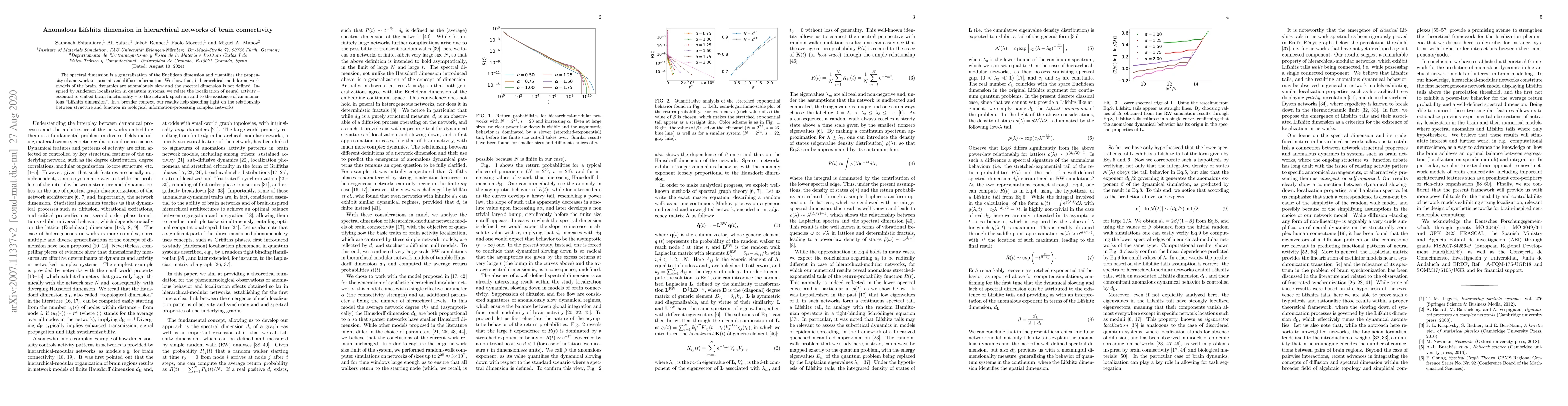 The spectral dimension is a generalization of the Euclidean dimension and quantifies the propensity of a network to transmit and diffuse information. We show that, in hierarchical-modular network models of the brain, dynamics are anomalously slow and the spectral dimension is not defined. Inspired by Anderson localization in quantum systems, we relate the localization of neural activity - essential to embed brain functionality - to the network spectrum and to the existence of an anomalous "Lifshitz dimension". In a broader context, our results help shedding light on the relationship between structure and function in biological information-processing complex networks.