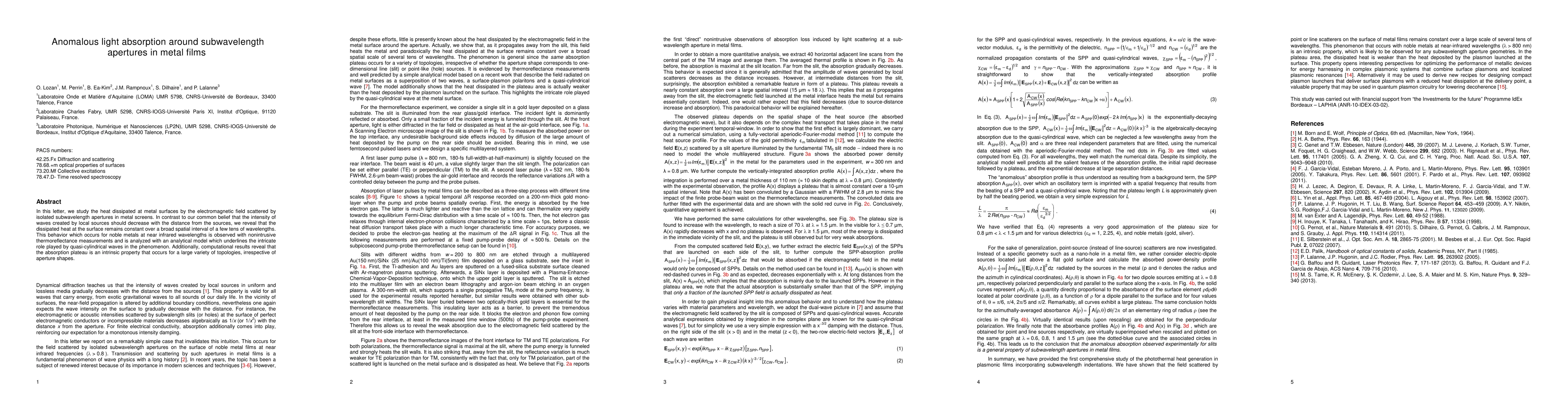 In this work, we study the heat dissipated at metal surfaces by the electromagnetic field scattered by isolated subwavelength apertures in metal screens. In contrast to our common belief that the intensity of waves created by local sources should decrease with the distance from the sources, we reveal that the dissipated heat at the surface remains constant over a broad spatial interval of a few tens of wavelengths. This behavior which occurs for noble metals at near infrared wavelengths is observed with nonintrusive thermoreflectance measurements and is analyzed with an analytical model which underlines the intricate role played by quasi-cylindrical waves in the phenomenon. Additionally, computational results reveal that the absorption plateau is an intrinsic property that occurs for a large variety of topologies, irrespective of aperture shapes.