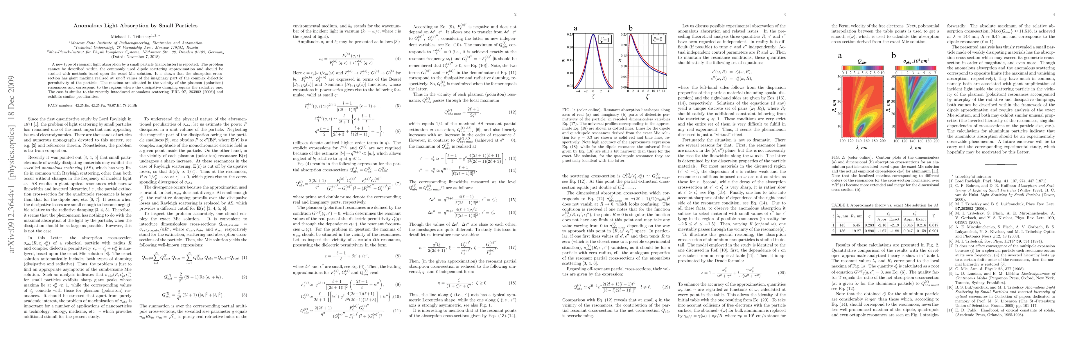 This paper reports a novel resonant light absorption phenomenon in small particles (nanoclusters) that defies the dipole scattering approximation, requiring the exact Mie solution for analysis. The study reveals giant absorption maxima near plasmon resonances, where dissipative damping matches radiative damping, akin to anomalous scattering.