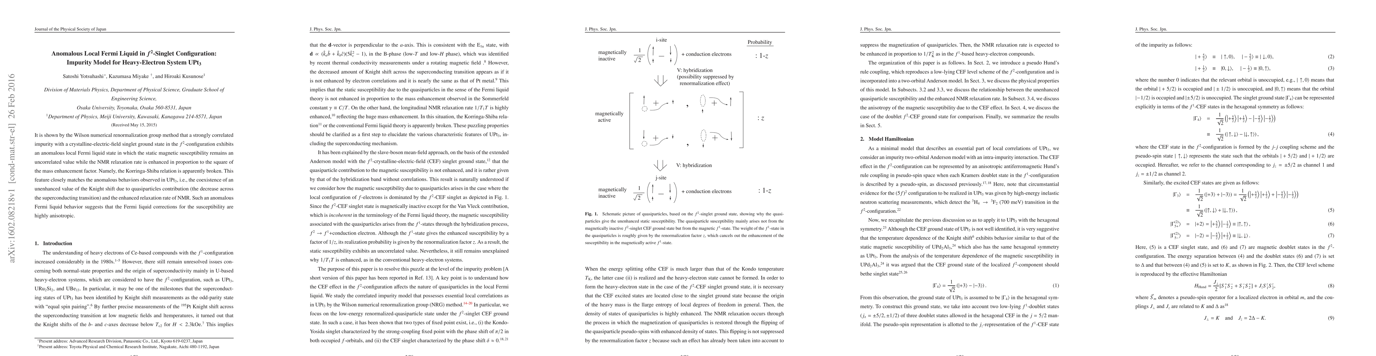 It is shown by the Wilson numerical renormalization group method that a strongly correlated impurity with a crystalline-electric-field singlet ground state in the f^2-configuration exhibits an anomalous local Fermi liquid state in which the static magnetic susceptibility remains an uncorrelated value while the NMR relaxation rate is enhanced in proportion to the square of the mass enhancement factor. Namely, the Korringa-Shiba relation is apparently broken. This feature closely matches the anomalous behaviors observed in UPt_3, i.e., the coexistence of an unenhanced value of the Knight shift due to quasiparticles contribution (the decrease across the superconducting transition) and the enhanced relaxation rate of NMR. Such an anomalous Fermi liquid behavior suggests that the Fermi liquid corrections for the susceptibility are highly anisotropic.