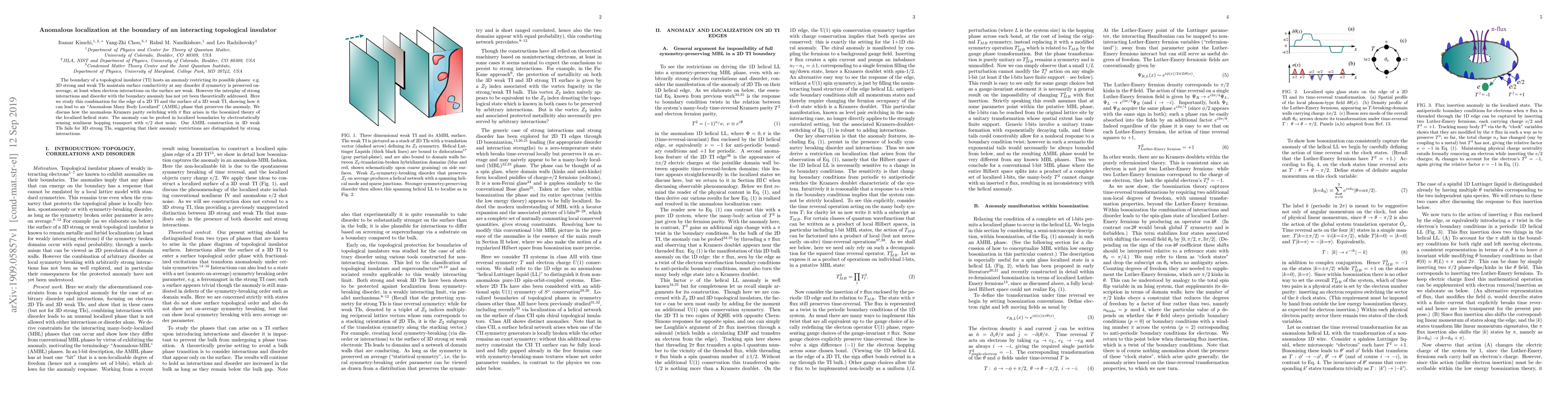 The boundary of a topological insulator (TI) hosts an anomaly restricting its possible phases: e.g. 3D strong and weak TIs maintain surface conductivity at any disorder if symmetry is preserved on-average, at least when electron interactions on the surface are weak. However the interplay of strong interactions and disorder with the boundary anomaly has not yet been theoretically addressed. Here we study this combination for the edge of a 2D TI and the surface of a 3D weak TI, showing how it can lead to an "Anomalous Many Body Localized" (AMBL) phase that preserves the anomaly. We discuss how the anomalous Kramers parity switching with pi flux arises in the bosonized theory of the localized helical state. The anomaly can be probed in localized boundaries by electrostatically sensing nonlinear hopping transport with e/2 shot noise. Our AMBL construction in 3D weak TIs fails for 3D strong TIs, suggesting that their anomaly restrictions are distinguished by strong interactions.