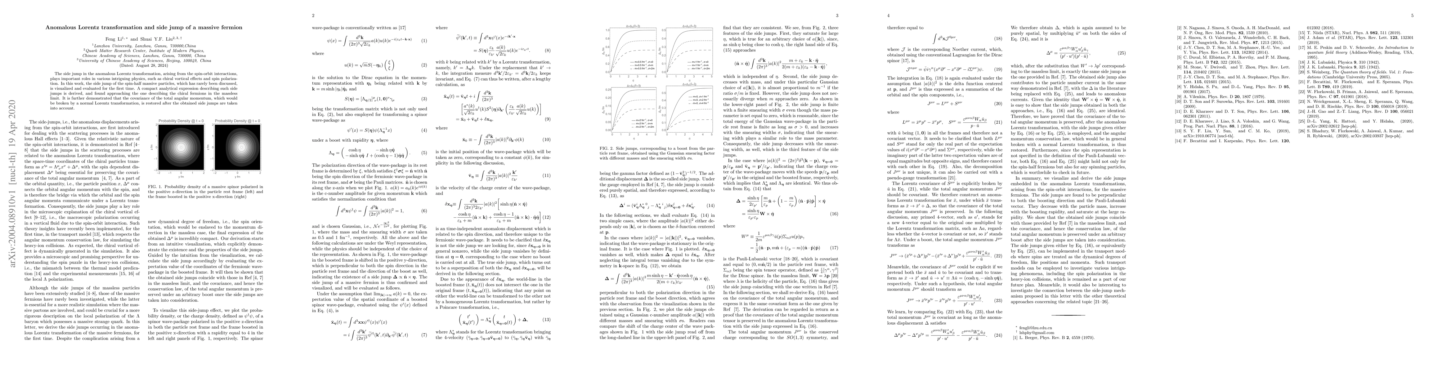 This paper evaluates the rarely discussed side jump phenomenon in spin-orbit interactions for massive fermions under anomalous Lorentz transformations, deriving a new analytical expression. It demonstrates how these side jumps restore the covariance of total angular momentum and approach chiral fermions in the massless limit.
