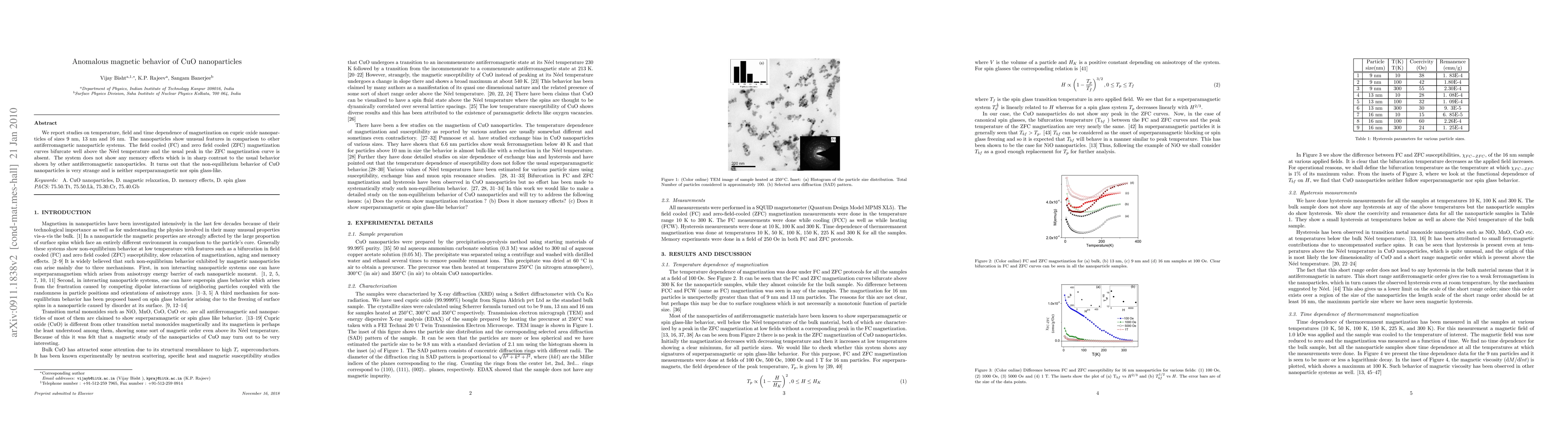 This study investigates the anomalous magnetic behavior of CuO nanoparticles, revealing unusual bifurcation in magnetization curves above the Néel temperature and absence of typical peaks, along with a lack of memory effects, indicating a non-equilibrium state distinct from superparamagnetism or spin glass behavior.