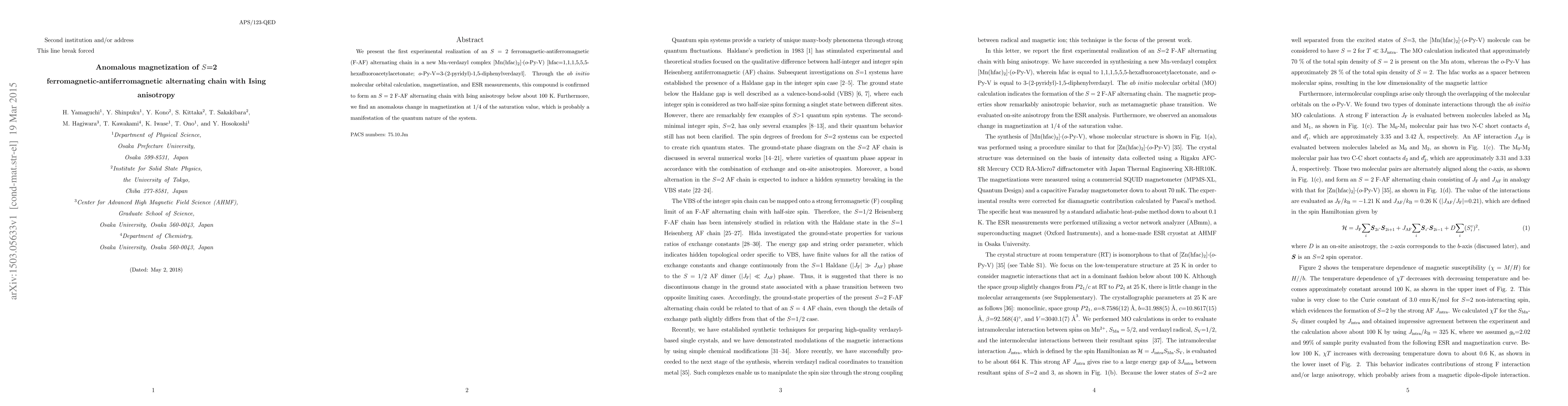 This paper reports the first experimental realization of an $S=2$ ferromagnetic-antiferromagnetic alternating chain in a Mn-verdazyl complex, confirmed through $ab$ initio calculations and measurements. An anomalous magnetization change at 1/4 of saturation suggests a quantum effect in the system.