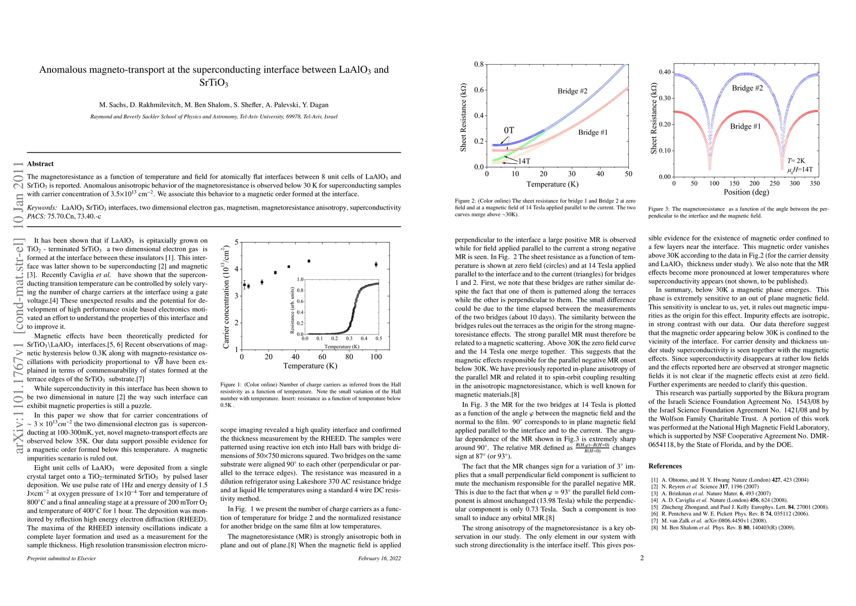 This study investigates the magnetoresistance at the interface between LaAlO3 and SrTiO3, revealing anomalous anisotropic behavior below 30 K, which is attributed to magnetic order formation at the interface in superconducting samples.