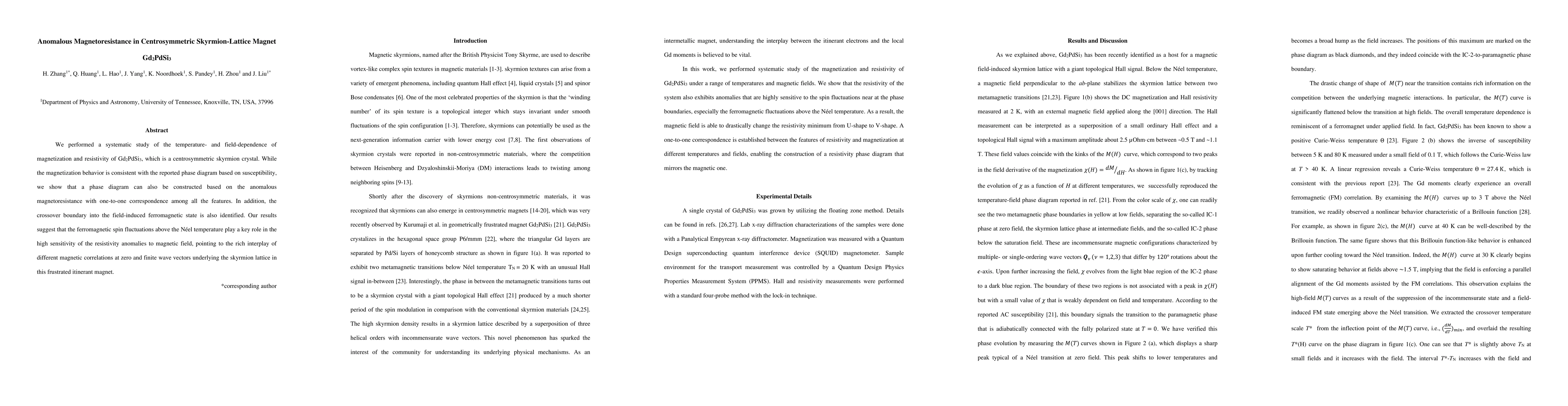 A study on Gd2PdSi3 reveals anomalous magnetoresistance that correlates with magnetic phase diagrams, providing insight into the complex interplay of spin fluctuations and skyrmion lattice behavior in this frustrated itinerant magnet.