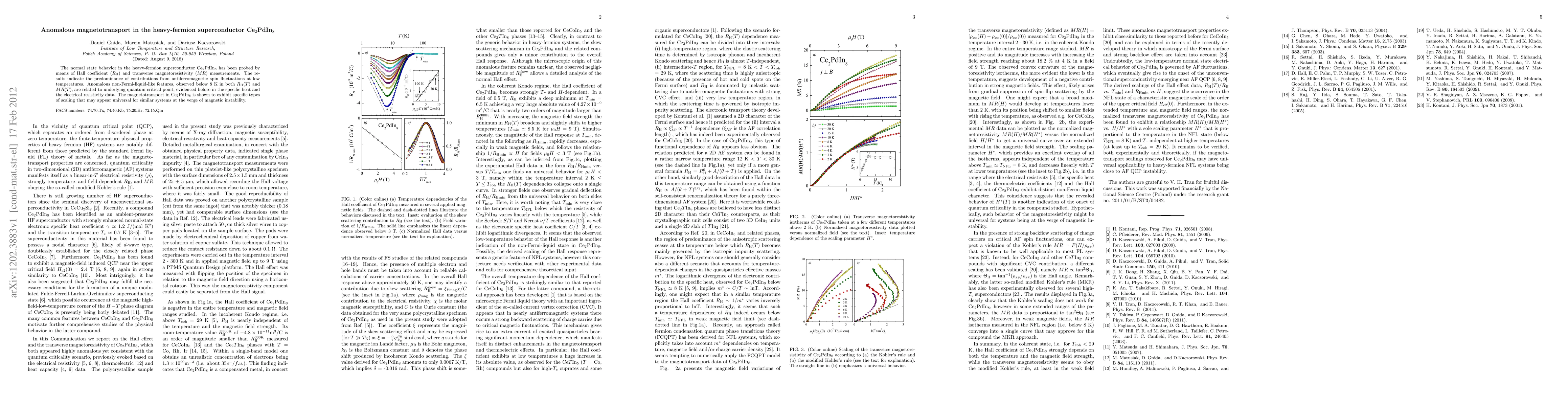 The paper presents a detailed analysis of the Hall coefficient and transverse magnetoresistivity in Ce2PdIn8, identifying anomalous non-Fermi-liquid-like features and specific scaling behaviors in magnetotransport.