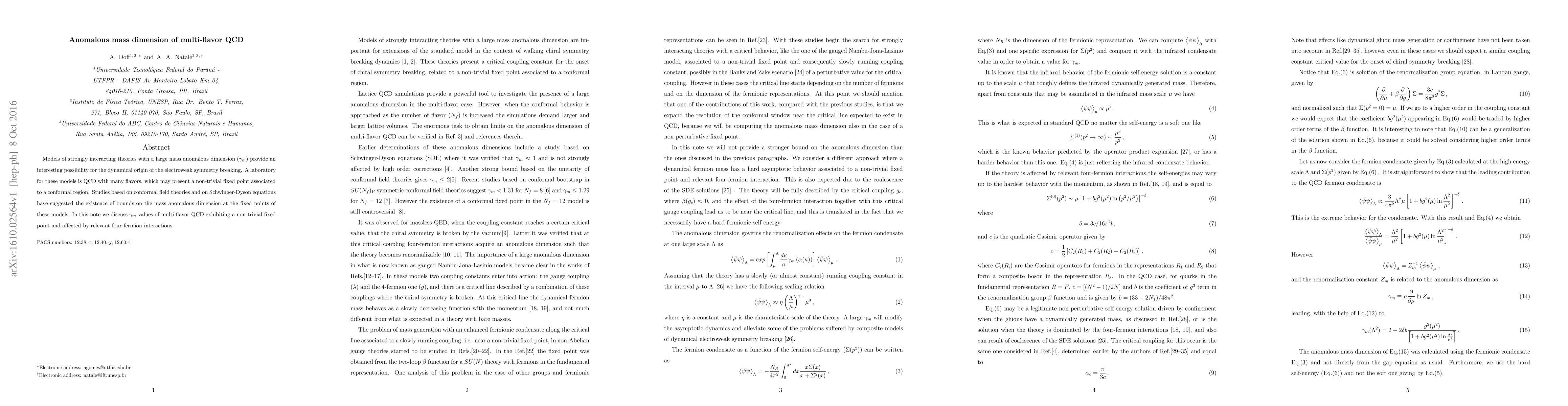 This paper explores the anomalous mass dimension ($\gamma_m$) in multi-flavor QCD, suggesting it could dynamically break electroweak symmetry. It investigates the non-trivial fixed points in QCD with many flavors, focusing on the bounds on $\gamma_m$ influenced by relevant four-fermion interactions.
