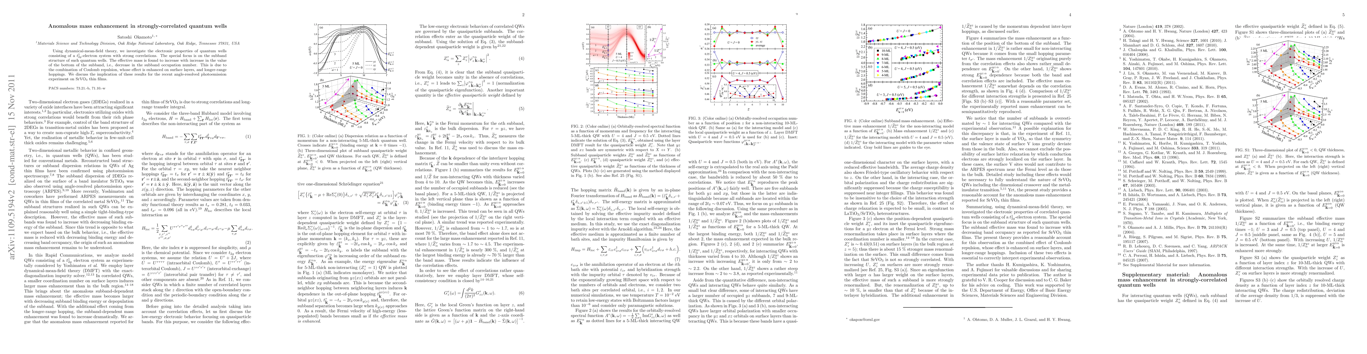 This study, employing dynamical-mean-field theory, reveals that in quantum wells with strong correlations, the effective mass of electrons increases as the subband occupation number decreases. This is attributed to amplified Coulomb repulsion on surface layers and longer-range hoppings, with implications for SrVO$_3$ thin film experiments.