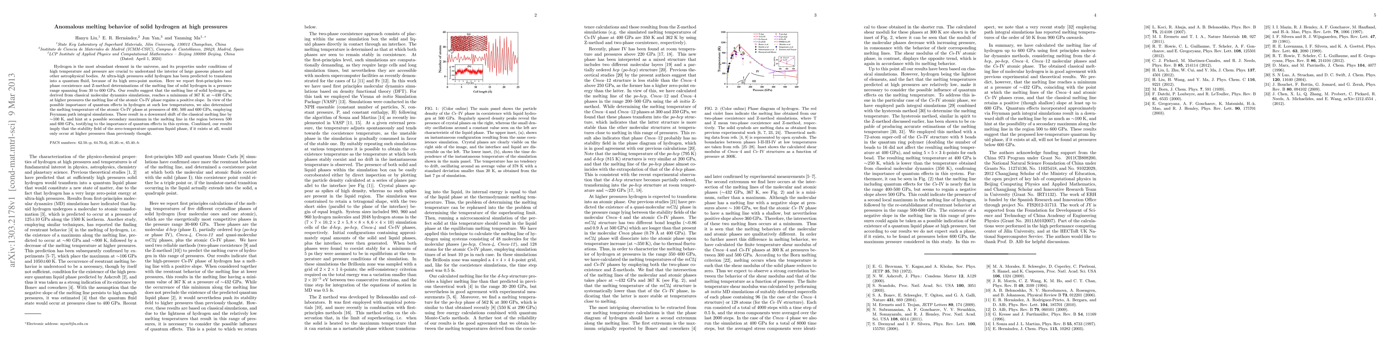 This study investigates the anomalous melting behavior of solid hydrogen under ultra-high pressures, revealing a minimum melting temperature of 367 K at 430 GPa. Quantum effects shift the melting line downward by about 100 K, suggesting a potential secondary maximum between 500 and 600 GPa, indicating the significance of quantum influences in this system.
