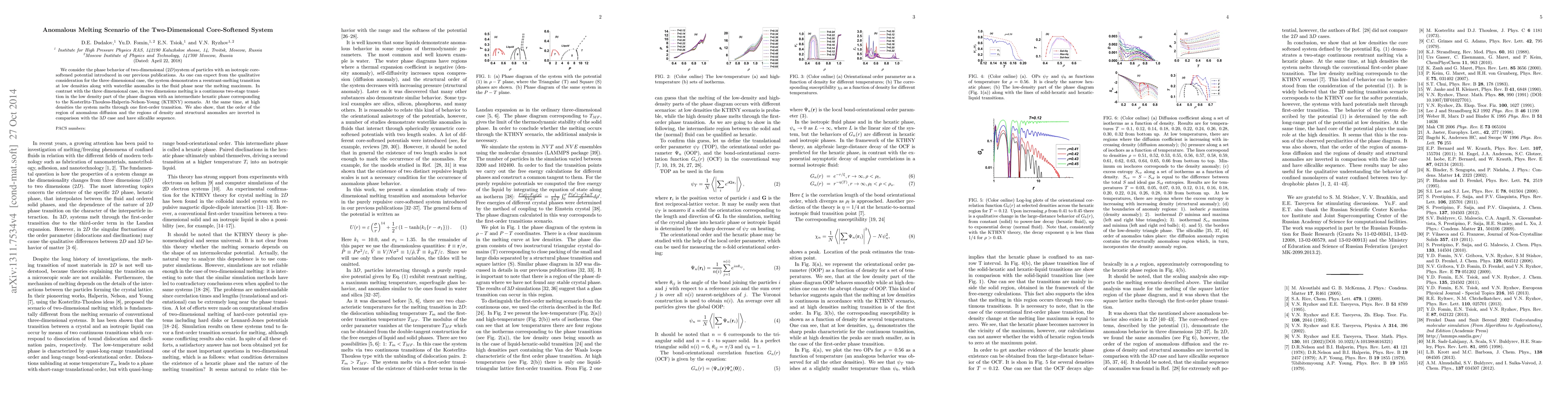 We consider the phase behavior of two-dimensional ($2D$)system of particles with an isotropic core-softened potential introduced in our previous publications. As one can expect from the qualitative consideration for the three dimensional case, the system demonstrates a reentrant-melting transition at low densities along with waterlike anomalies in the fluid phase near the melting maximum. In contrast with the three dimensional case, in two dimensions melting is a continuous two-stage transition in the low density part of the phase diagram with an intermediate hexatic phase corresponding to the Kosterlitz-Thouless-Halperin-Nelson-Young (KTHNY) scenario. At the same time, at high densities the system melts through one first-order transition. We also show, that the order of the region of anomalous diffusion and the regions of density and structural anomalies are inverted in comparison with the $3D$ case and have silicalike sequence.