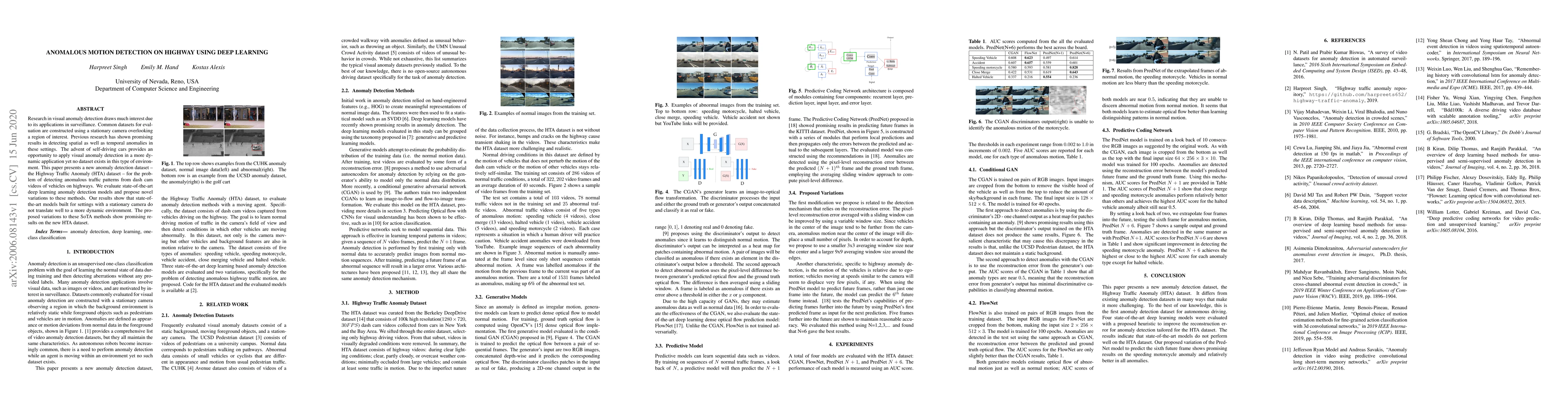 Researchers created a new dataset to detect anomalous traffic patterns from dash cam videos of vehicles on highways using deep learning. Their approach showed promising results on the new dataset, highlighting the need for dynamic anomaly detection models in self-driving cars.