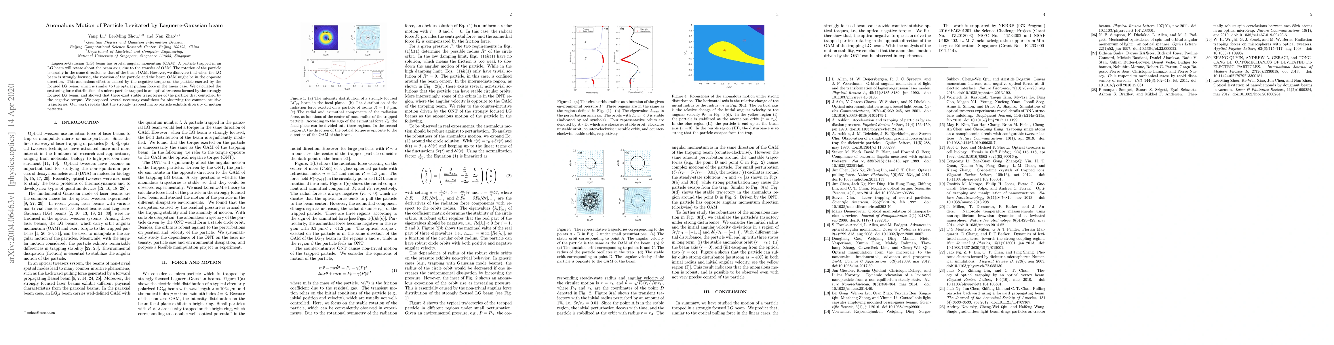 Researchers discover that a strongly focused Laguerre-Gaussian beam can cause a trapped particle to rotate in the opposite direction of the beam's orbital angular momentum, exhibiting unexpected motion patterns.