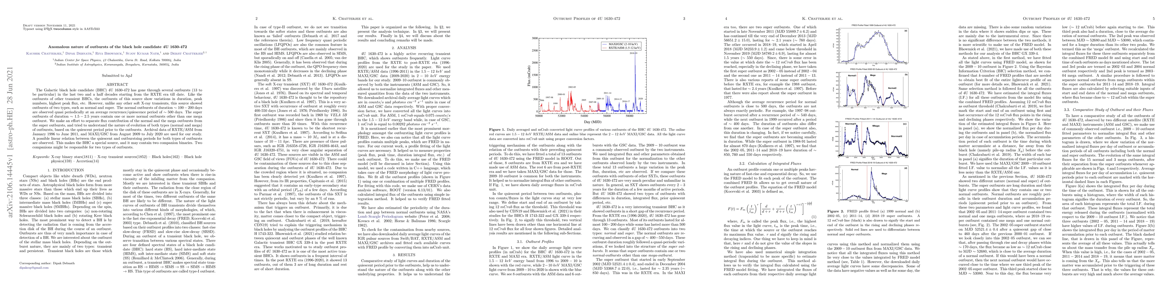The study analyzes the outburst profiles of the black hole candidate 4U 1630-472 using archival daily average light curve data from RXTE/ASM (1.5–12 keV) and MAXI/GSC (2–10 keV) satellites. Light curves are fitted with the FRED (Fast Rise Exponential Decay) model to extract parameters like peak flux, integral flux, duration, etc.