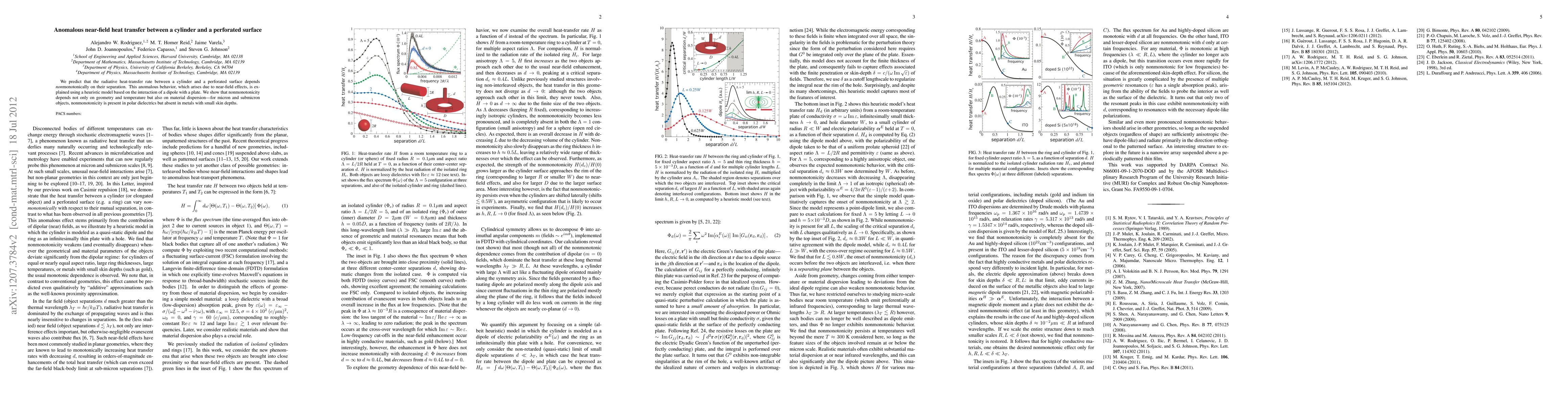 We predict that the radiative heat-transfer rate between a cylinder and a perforated surface depends non-monotonically on their separation. This anomalous behavior, which arises due to near-field effects, is explained using a heuristic model based on the interaction of a dipole with a plate. We show that nonmonotonicity depends not only on geometry and temperature but also on material dispersion - for micron and submicron objects, nonmonotonicity is present in polar dielectrics but absent in metals with small skin depths.