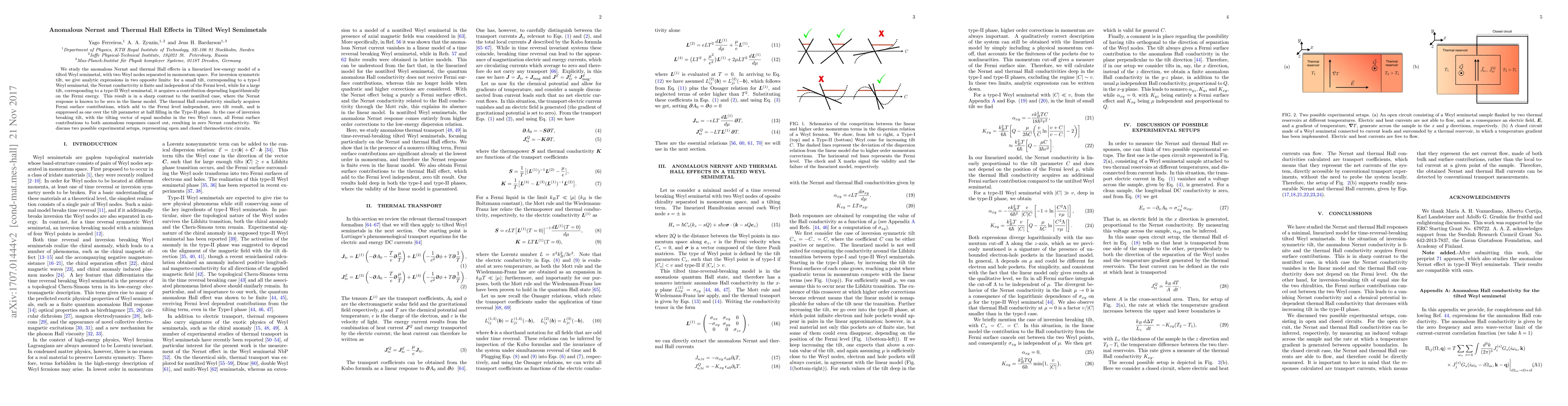 This paper investigates the anomalous Nernst and thermal Hall effects in tilted Weyl semimetals, revealing significant Fermi level dependencies and contrasting results between type-I and type-II Weyl semimetals, with implications for experimental setups.