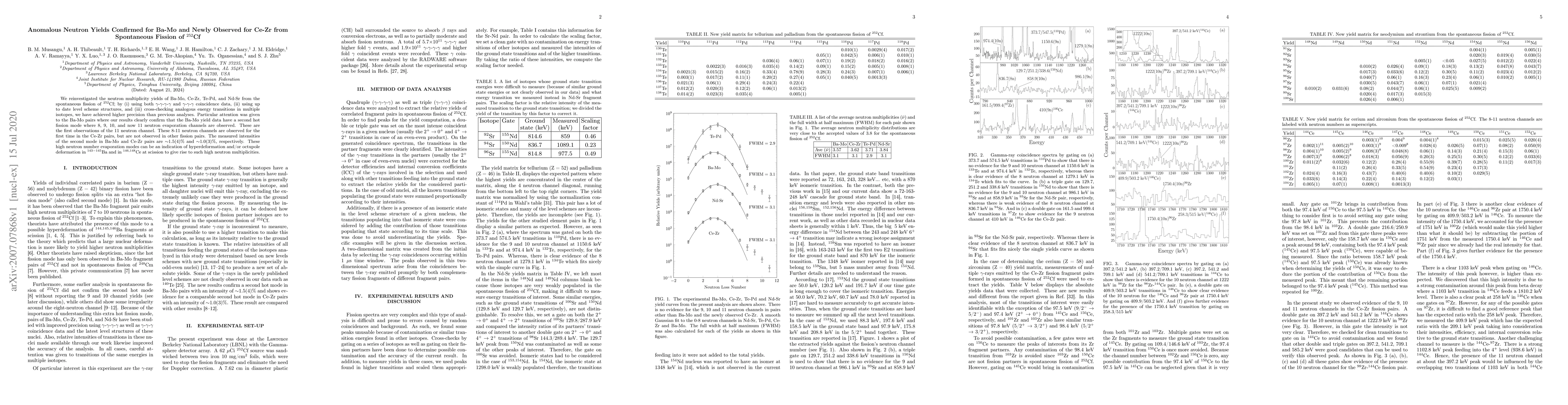 We reinvestigated the neutron multiplicity yields of Ba-Mo, Ce-Zr, Te-Pd, and Nd-Sr from the spontaneous fission of $^{252}$Cf; by (i) using both $\gamma$-$\gamma$-$\gamma$-$\gamma$ and $\gamma$-$\gamma$-$\gamma$ coincidence data, (ii) using up to date level scheme structures, and (iii) cross-checking analogous energy transitions in multiple isotopes, we have achieved higher precision than previous analyses. Particular attention was given to the Ba-Mo pairs where our results clearly confirm that the Ba-Mo yield data have a second hot fission mode where 8, 9, 10, and now 11 neutron evaporation channels are observed. These are the first observations of the 11 neutron channel. These 8-11 neutron channels are observed for the first time in the Ce-Zr pairs, but are not observed in other fission pairs. The measured intensities of the second mode in Ba-Mo and Ce-Zr pairs are $\sim$1.5(4)$\%$ and $\sim$1.0(3)$\%$, respectively. These high neutron number evaporation modes can be an indication of hyperdeformation and/or octupole deformation in $^{143-145}$Ba and in $^{146,148}$Ce at scission to give rise to such high neutron multiplicities.