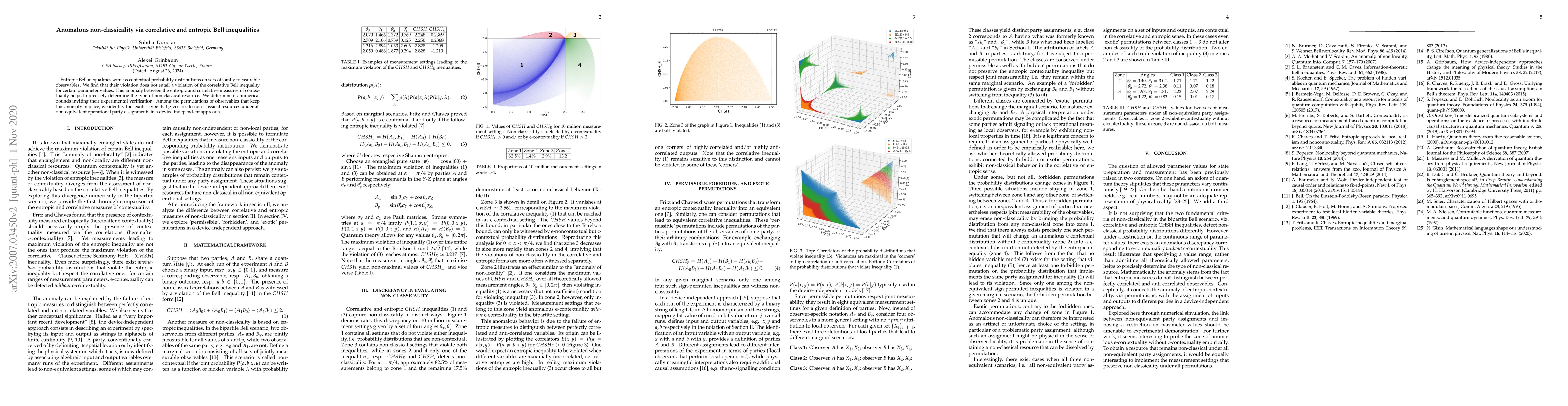 Entropic Bell inequalities witness contextual probability distributions on sets of jointly measurable observables. We find that their violation does not entail a violation of the correlative Bell inequality for certain parameter values. This anomaly between the entropic and correlative measures of contextuality helps to precisely qualify the type of non-classical resource. We determine its numerical bounds inviting their experimental verification. Among the permutations of observables that keep this anomaly in place, we identify the 'exotic' type that gives rise to non-classical resources under all non-equivalent operational party assignments in a device-independent approach.