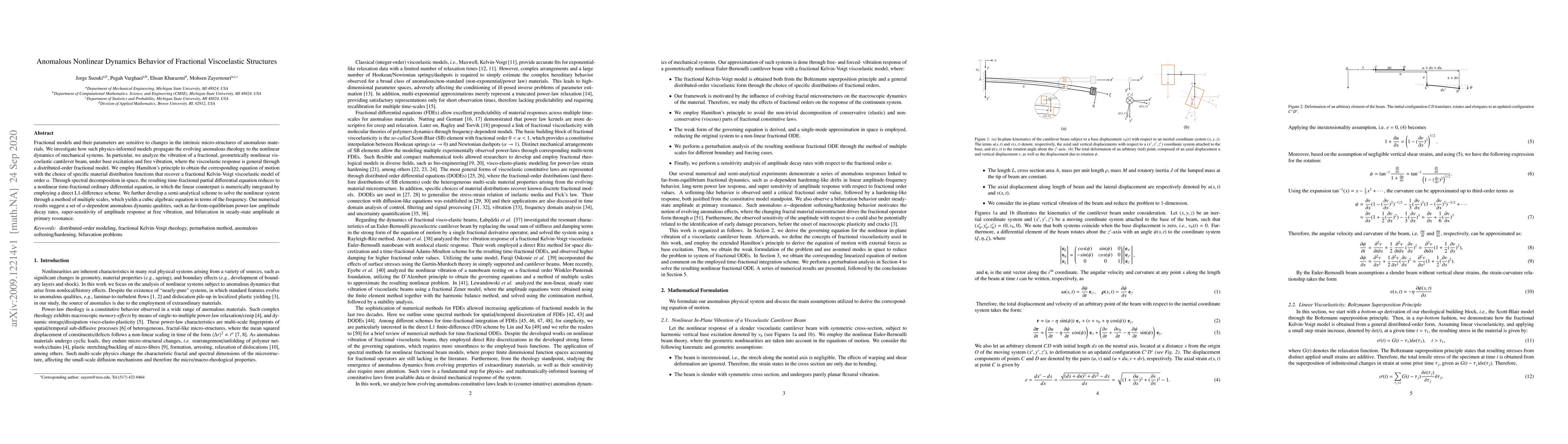 This paper investigates the nonlinear dynamics of fractional viscoelastic cantilever beams, revealing anomalous behaviors such as power-law amplitude decay rates and super-sensitivity in response to free vibration. The study employs Hamilton's principle and a method of multiple scales to derive and solve the governing equations, highlighting $\alpha$-dependent dynamic qualities.