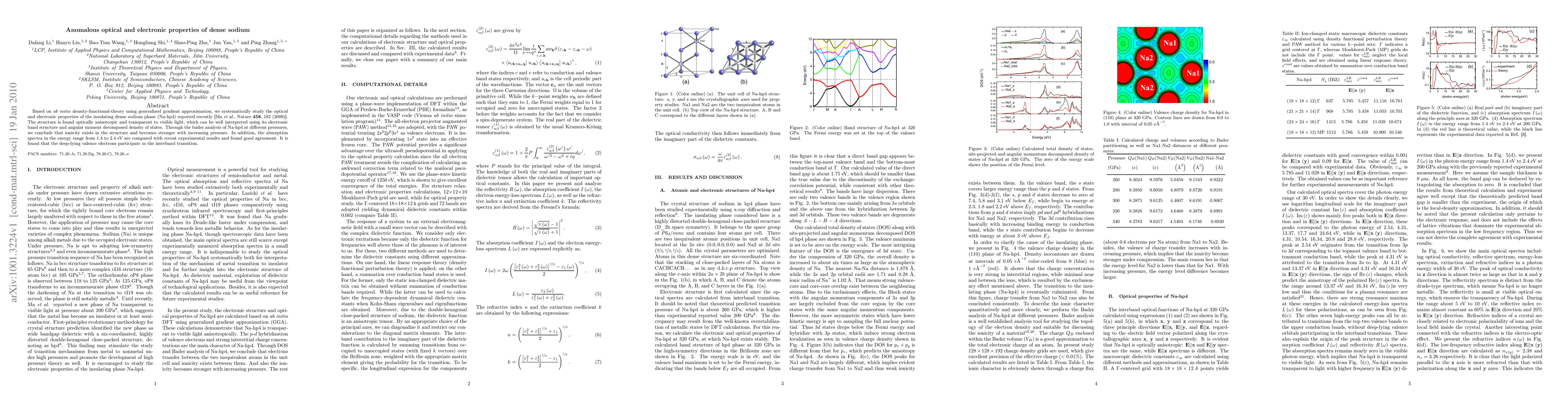 Based on ab initio density-functional-theory using generalized gradient approximation, we systematically study the optical and electronic properties of the insulating dense sodium phase (Na-hp4) reported recently [Ma \textit{et al.}, Nature \textbf{458}, 182 (2009)]. The structure is found optically anisotropic and transparent to visible light, which can be well interpreted using its electronic band structure and angular moment decomposed density of states. Through the bader analysis of Na-hp4 at different pressures, we conclude that ionicity exists in the structure and becomes stronger with increasing pressure. In addition, the absorption spectra in the energy range from 1.4 to 2.4 eV are compared with recent experimental results and found good agreement. It is found that the deep-lying valence electrons participate in the interband transition.
