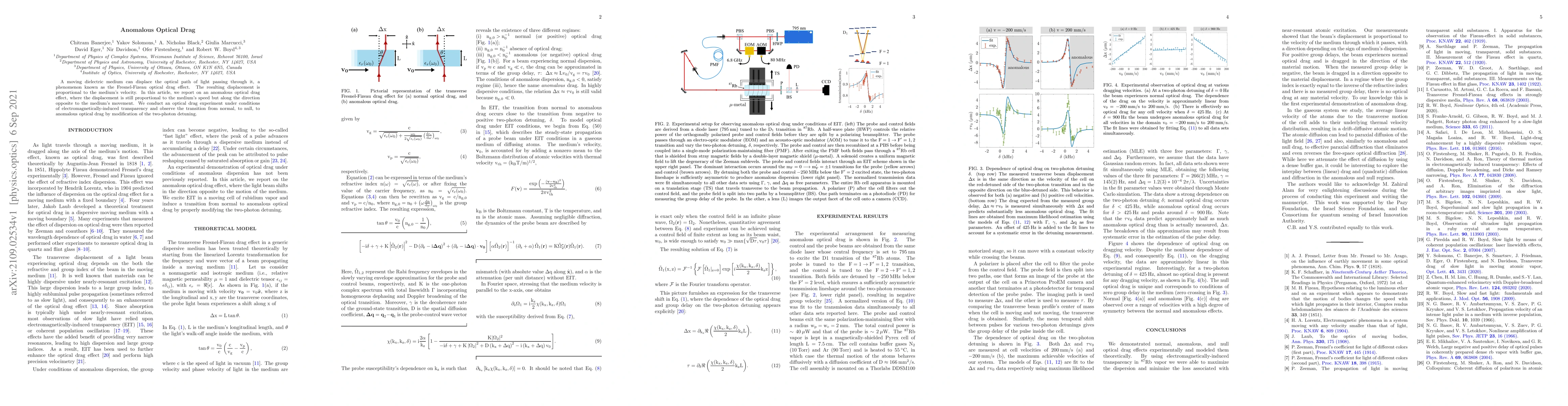 A moving dielectric medium can displace the optical path of light passing through it, a phenomenon known as the Fresnel-Fizeau optical drag effect. The resulting displacement is proportional to the medium's velocity. In this article, we report on an anomalous optical drag effect, where the displacement is still proportional to the medium's speed but along the direction opposite to the medium's movement. We conduct an optical drag experiment under conditions of electromagnetically-induced transparency and observe the transition from normal, to null, to anomalous optical drag by modification of the two-photon detuning.