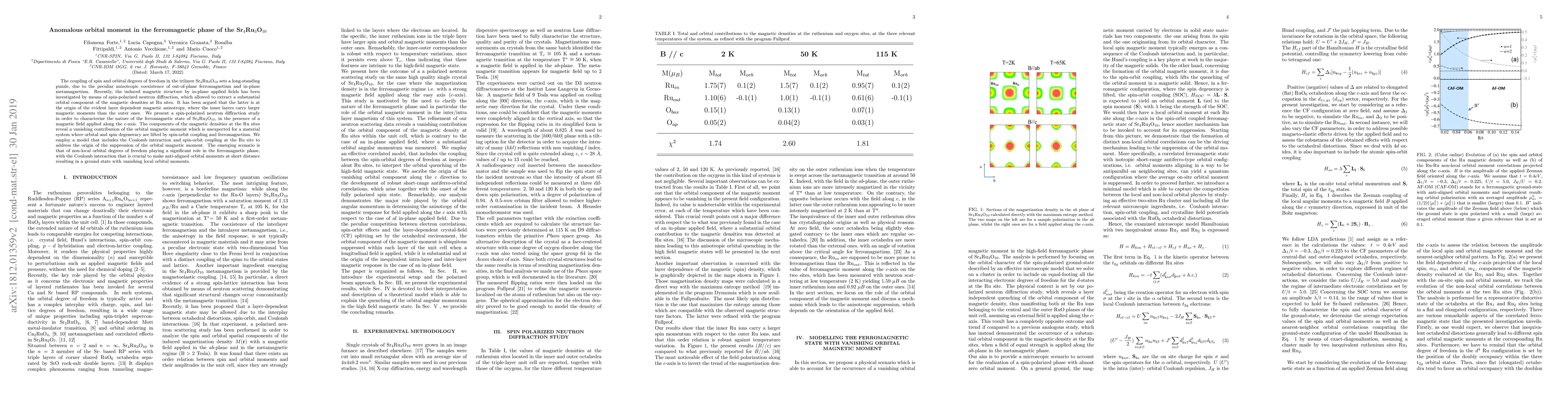 Researchers studied Sr4Ru3O10 and found that orbital moments in its ferromagnetic phase are unexpectedly suppressed, with a new model suggesting non-local orbital degrees of freedom play a key role.