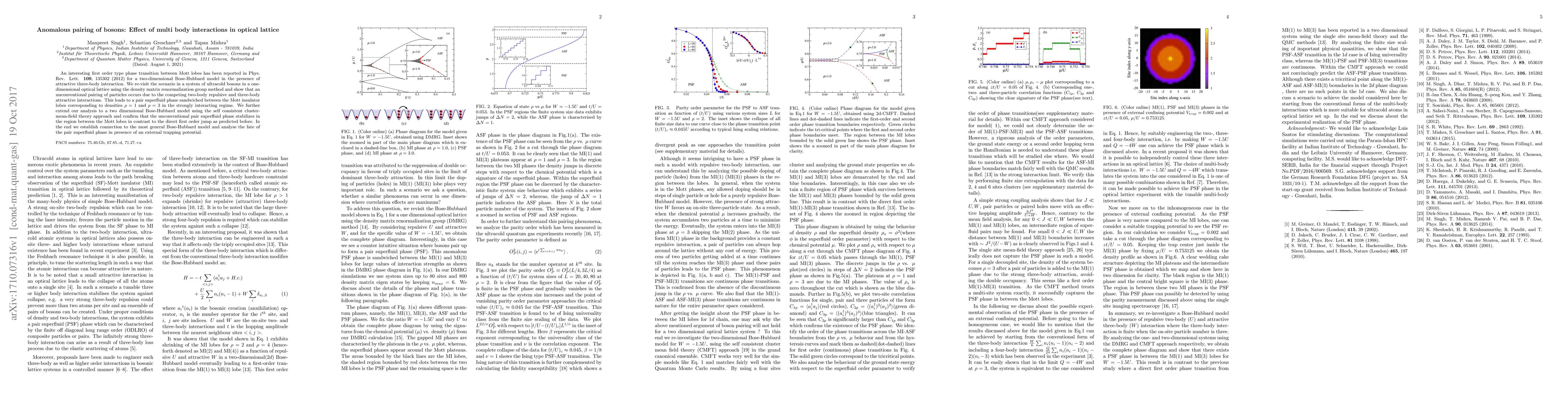 This paper investigates the effect of multi-body interactions in optical lattices on the pairing of bosons, revealing an unconventional pair superfluid phase due to competing interactions. The study confirms the stabilization of this phase between Mott insulator lobes in both one-dimensional and two-dimensional Bose-Hubbard models.
