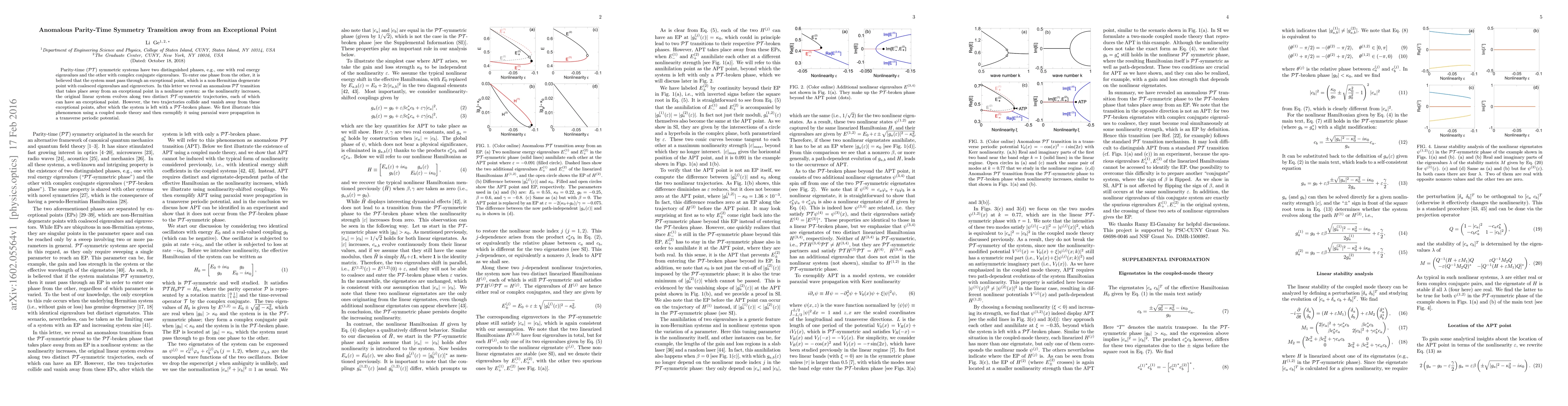 This paper reveals an anomalous parity-time symmetry transition in nonlinear systems that occurs away from an exceptional point, demonstrating that the system can evolve along two distinct PT-symmetric trajectories, each potentially having its own exceptional point, which then collide and vanish, leading to a PT-broken phase. The phenomenon is illustrated using coupled mode theory and exemplified through paraxial wave propagation.