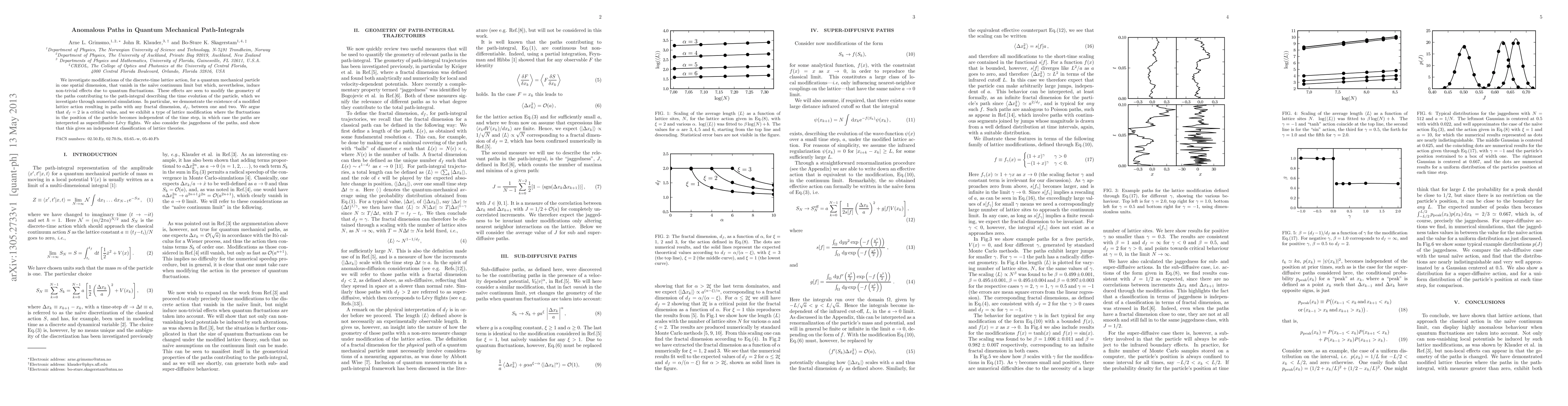 This paper explores lattice modifications in quantum mechanical path-integrals that induce non-trivial quantum effects, altering the fractal dimension of particle paths. The study reveals that paths with fractal dimensions between 1 and 2 emerge, with d_f=2 marking a critical point, and introduces superdiffusive Lévy flights where position fluctuations are time-independent.