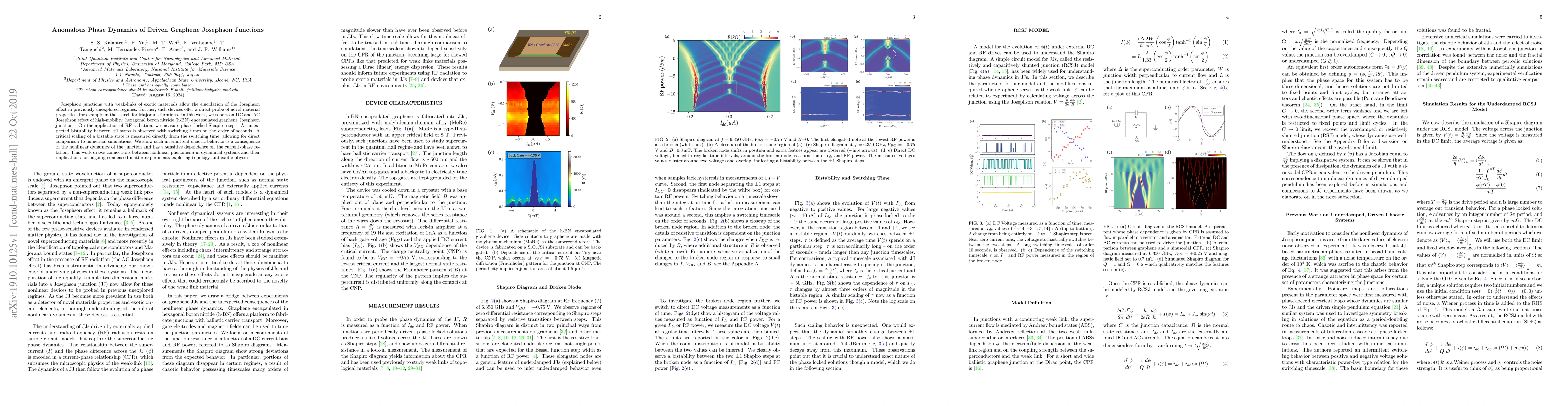 This paper investigates the Josephson effect in graphene junctions encapsulated by hexagonal boron nitride, revealing unexpected bistability and chaotic dynamics under RF radiation. The study links these nonlinear phenomena to the current-phase relation and provides insights into the implications for topological and exotic physics research.
