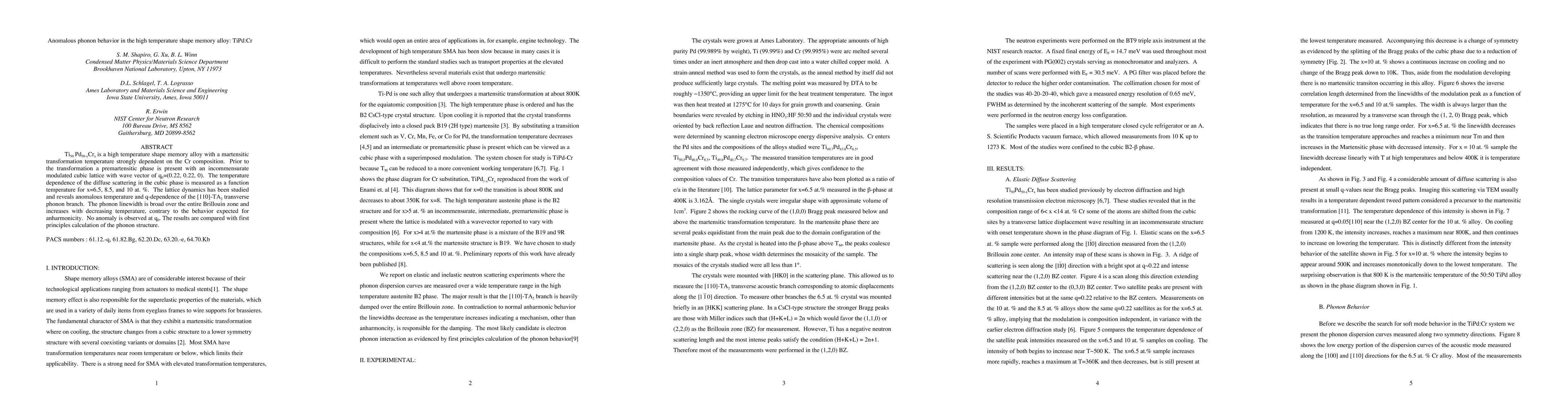 This study investigates the anomalous phonon behavior in the high temperature shape memory alloy Ti50Pd50-xCrx, finding that the [110]-TA2 transverse phonon branch exhibits unusual temperature and wave vector dependence, with a broad linewidth increasing at lower temperatures, contrary to typical anharmonicity trends. First principles calculations support these findings.