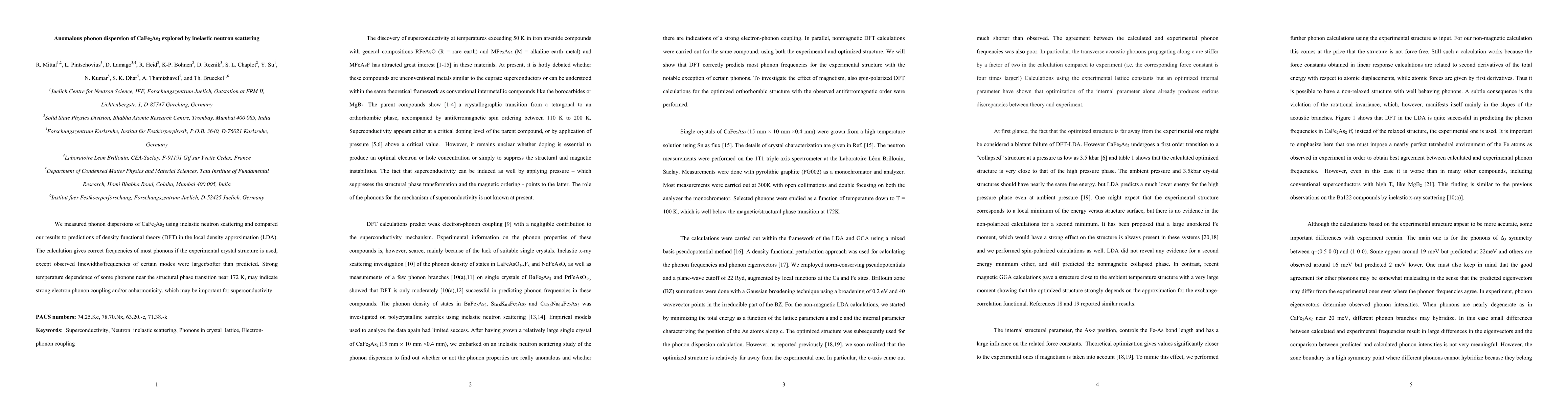 Extensive inelastic neutron scattering measurements of phonons on a single crystal of CaFe2As2 allowed us to establish a fairly complete picture of phonon dispersions in the main symmetry directions. The phonon spectra were also calculated by density functional theory (DFT) in the local density approximation (LDA). There are serious discrepancies between calculations done for the optimized structure and experiment, because the optimised structure is not the ambient pressure structure but is very close to the collapsed structure reached at p = 3.5 kbar. However, if the experimental crystal structure is used the calculation gives correct frequencies of most phonons. The most important new result is that linewidths/frequencies of certain modes are larger/softer than predicted by DFT-LDA. We also observed strong temperature dependence of some phonons near the structural phase transition near 173K. This behavior may indicate anomalously strong electron phonon coupling and/or anharmonicity, which may be important to the mechanism of superconductivity.